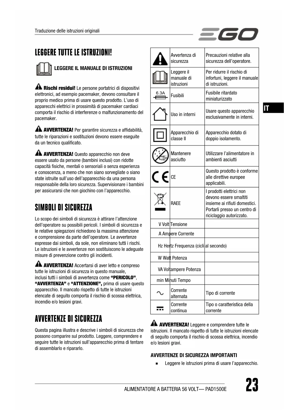 MANUALE UTENTE PAD1500E EGO