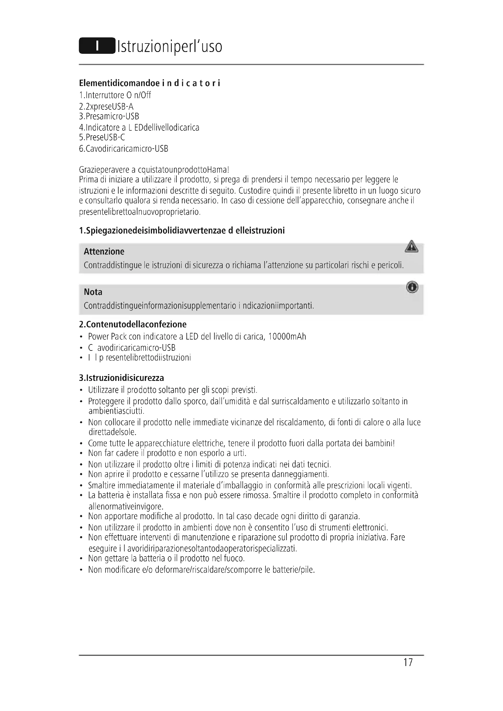 Grazie per avereacquistato un prodotto Hama! Prima di iniziareautilizzareilprodotto, si prega di prendersi il tempo necessario per leggerele istruzioni eleinformazioni descritte di seguito. Custodirequindi il presente libretto in un luogo sicuro econsultarlo qualorasirenda necessario. In caso di cessione dell’apparecchio, consegnareanche il presente libretto al nuovo proprietario.