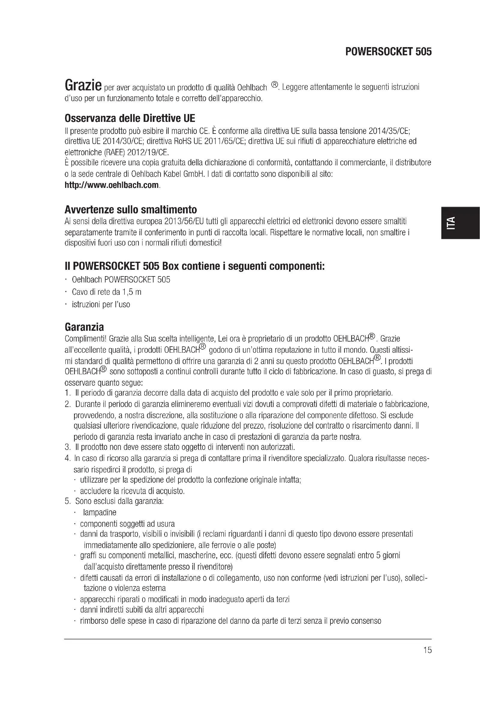 POWERSOCKET 505 Grazie per aver acquistato un prodotto di qualità Oehlbach