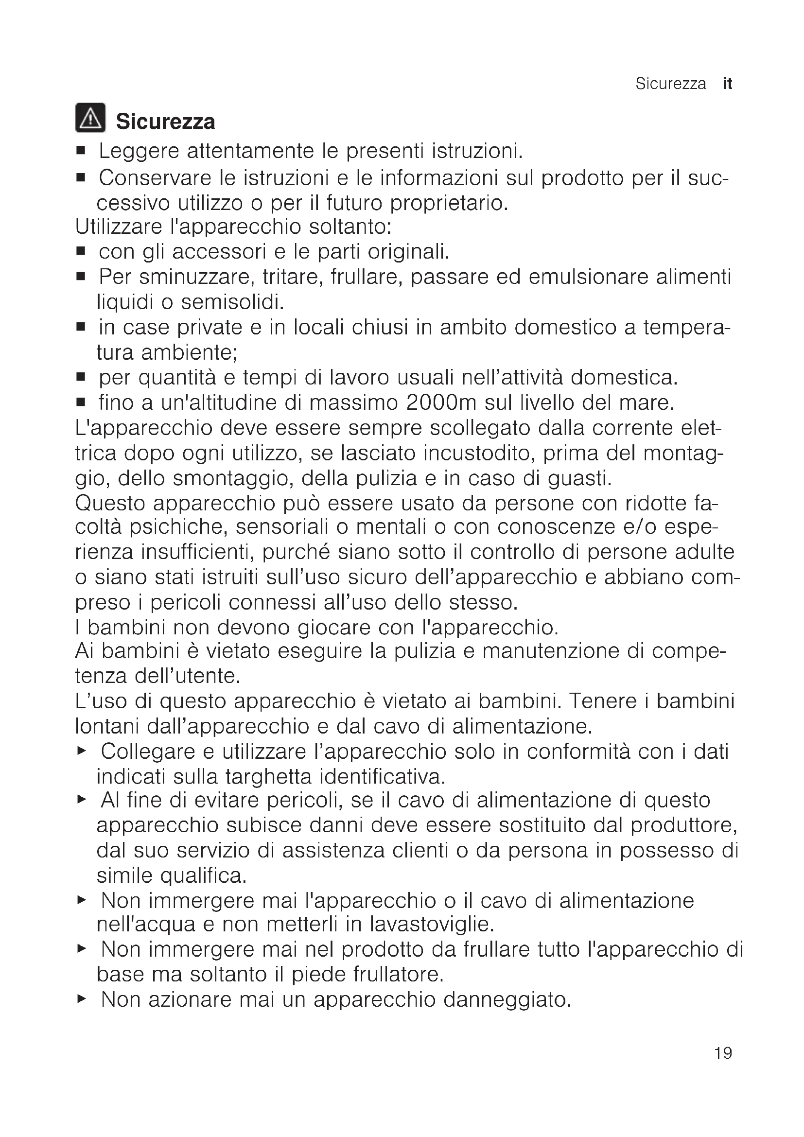Nota: I piedi frullatore non sono adatti per la preparazione di pure costituiti solo da pa-tate od alimenti con simile consistenza.