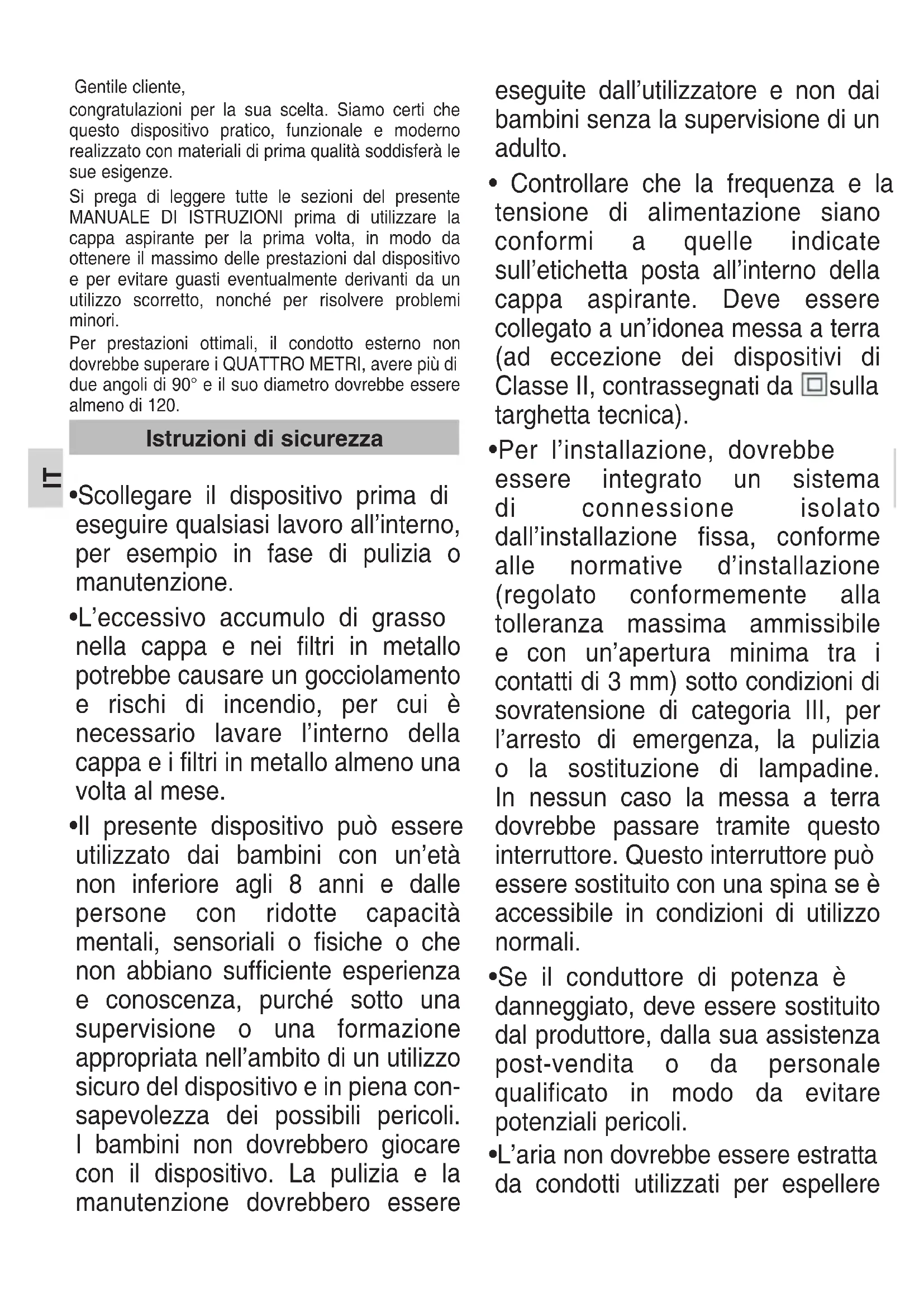 Istruzioni di sicurezzafumi dall’apparecchio alimentato con gas o altri combustibili.