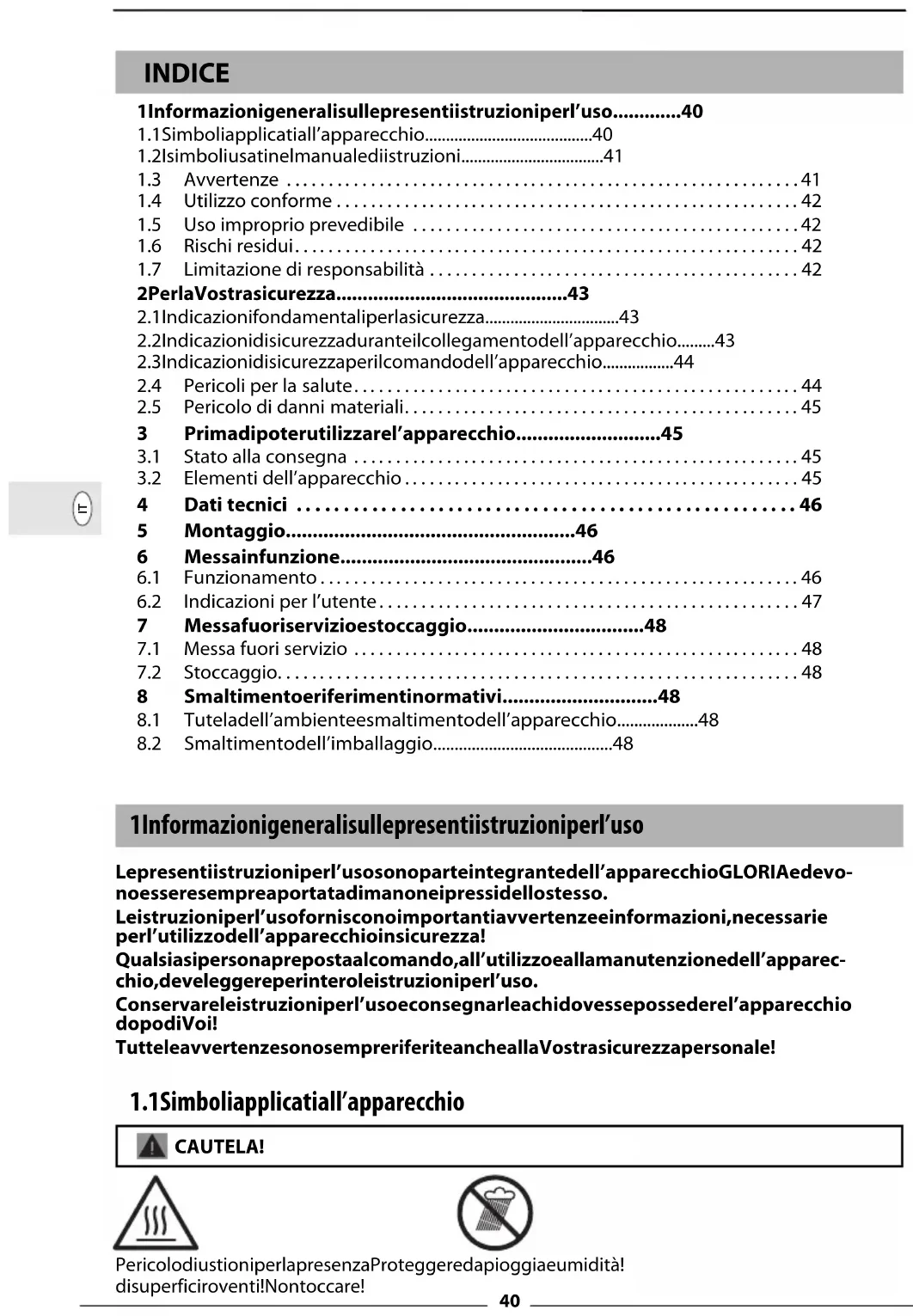 INDICE 1 Informazioni generali sulle presenti istruzioni per l’uso ... 40