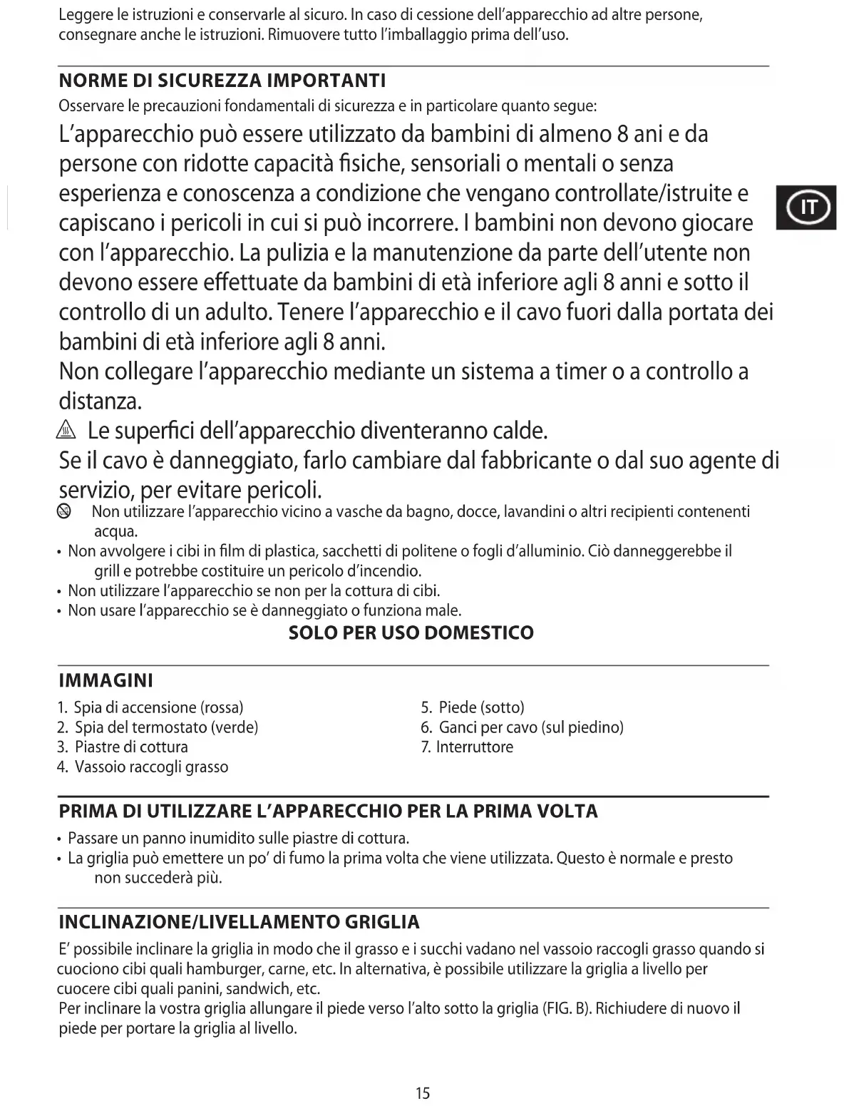 - La griglia può emettere un po’ di fumo la prima volta che viene utilizzata. Questo è normale e presto non succederà più.