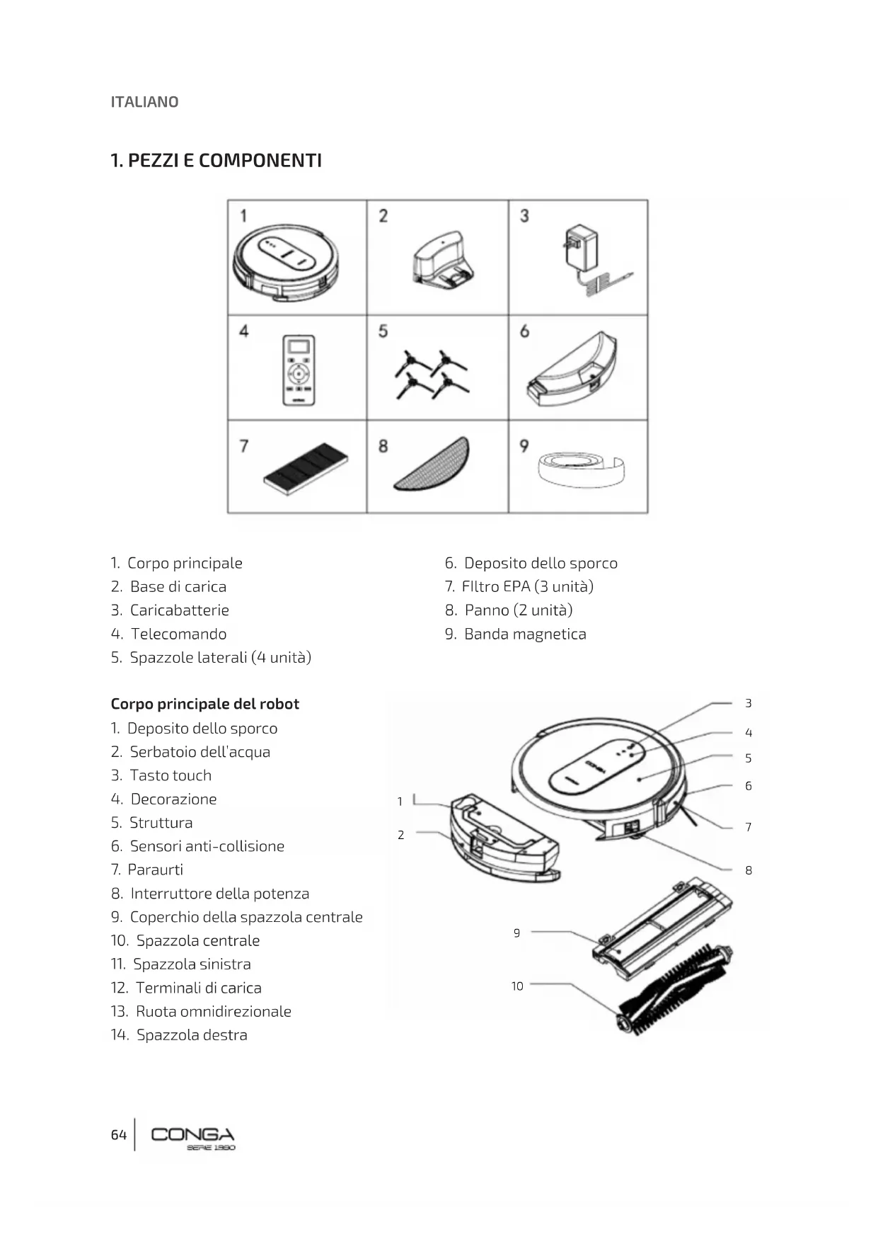 Per accedere a tutte le funzioni del tuo robot da qualsiasi luogo si raccomanda di scaricare la App Conga S1390. Potrai controllare il robot nel modo più efcace e godere una pulizia d’eccellenza. VANTAGGI DELL’APP: