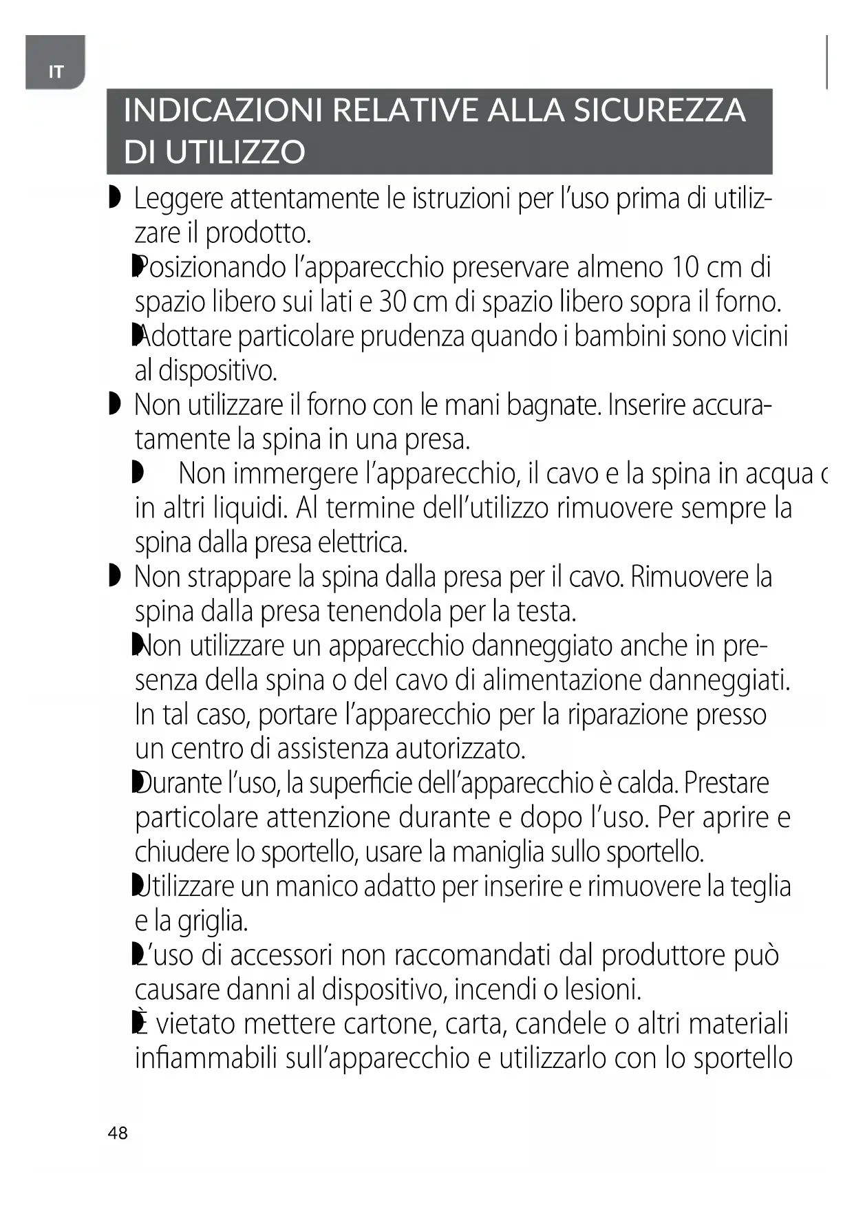 Adottare particolare prudenza quando i bambini sono vicini al dispositivo. Non utilizzare il forno con le mani bagnate. Inserire accura