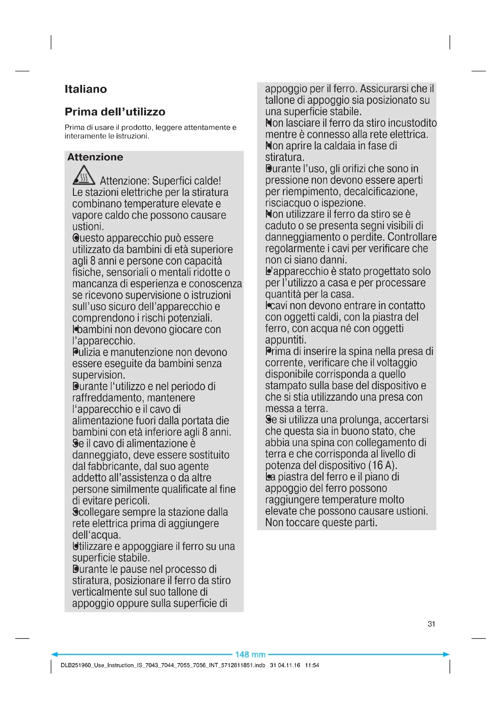 DLB251960_Use_Instruction_IS_7043_7044_7055_7056_INT_5712811851.indb 30 04.11.16 11:54Italiano Prima dell’utilizzo Prima di usare il prodotto, leggere attentamente e interamente le istruzioni. Attenzione