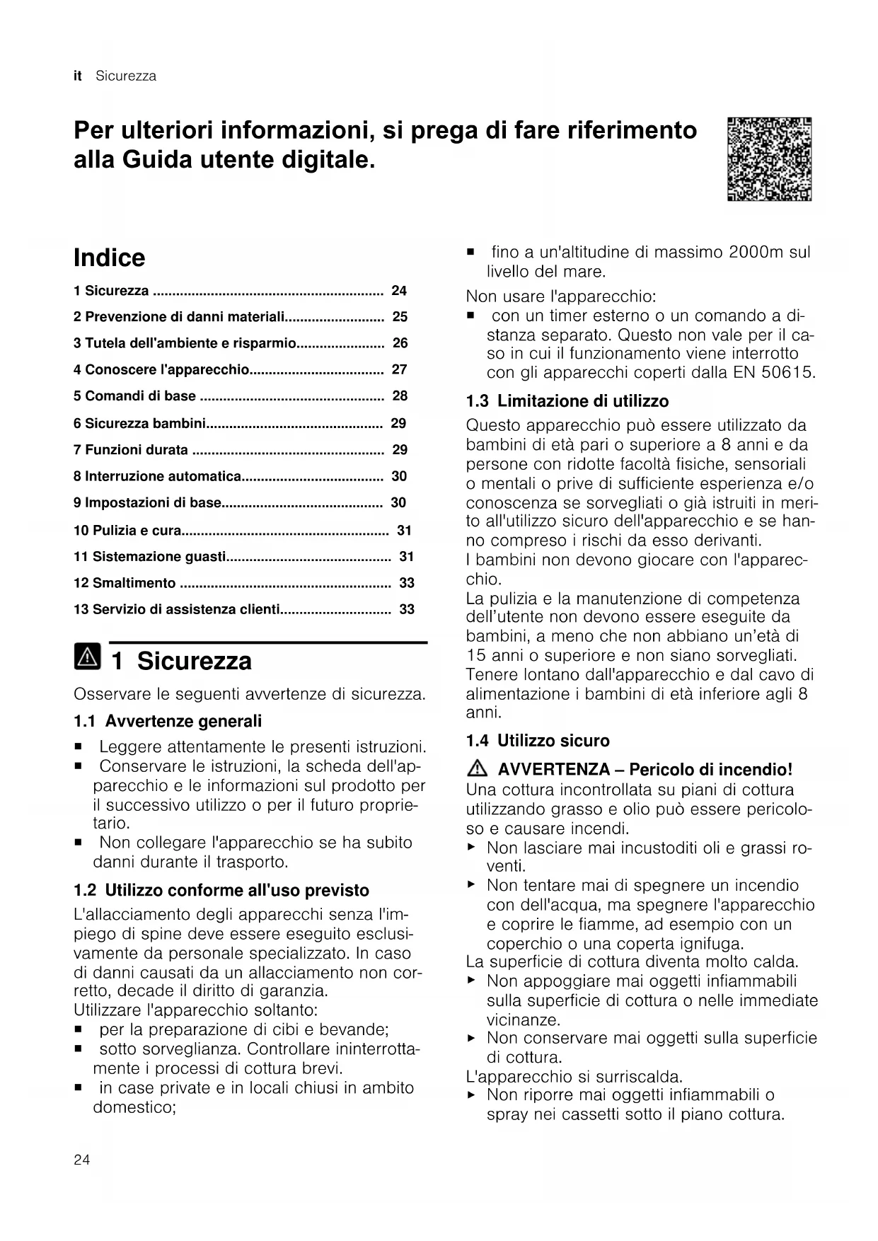 - Per ulteriori informazioni, si prega di fare riferimento alla Guida utente digitale. Indice 1 Sicurezza p. 24