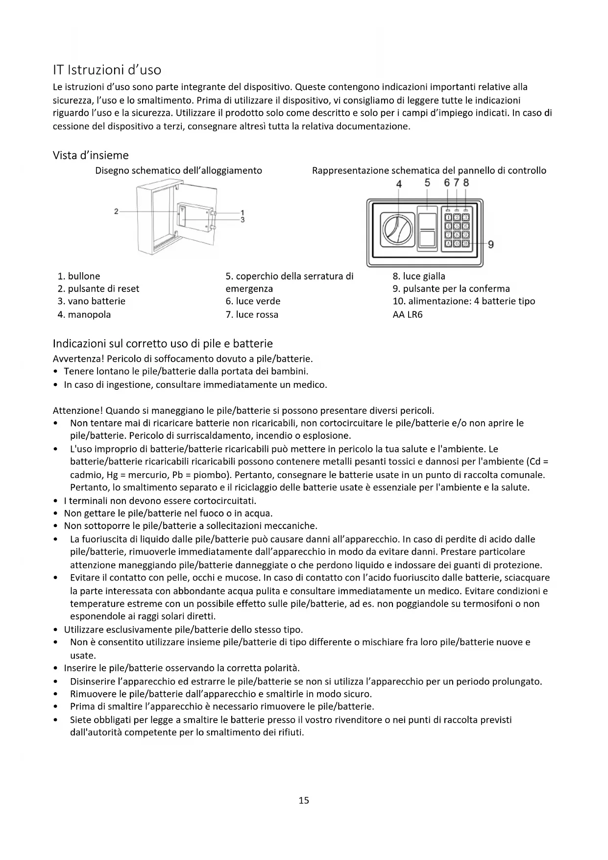 AA LR6 Indicazioni sul corretto uso di pile e batterie Avvertenza! Pericolo di soffocamento dovuto a pile/batterie.