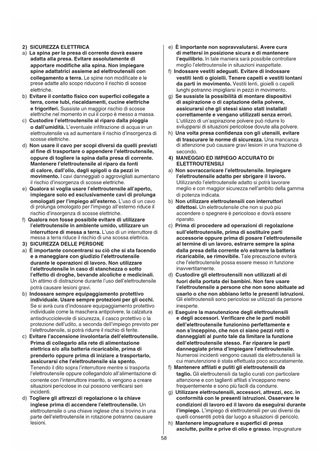 - Nel caso di cattivo funzionamento elettrico o meccanico, spegnete subito l’utensile e staccate la spina