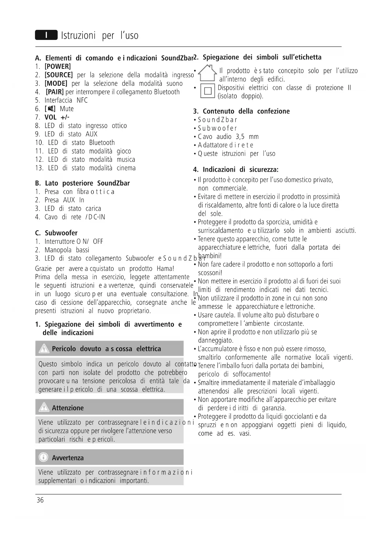 MANUALE UTENTE uRage SoundZbar 2.1 Unleashed HAMA