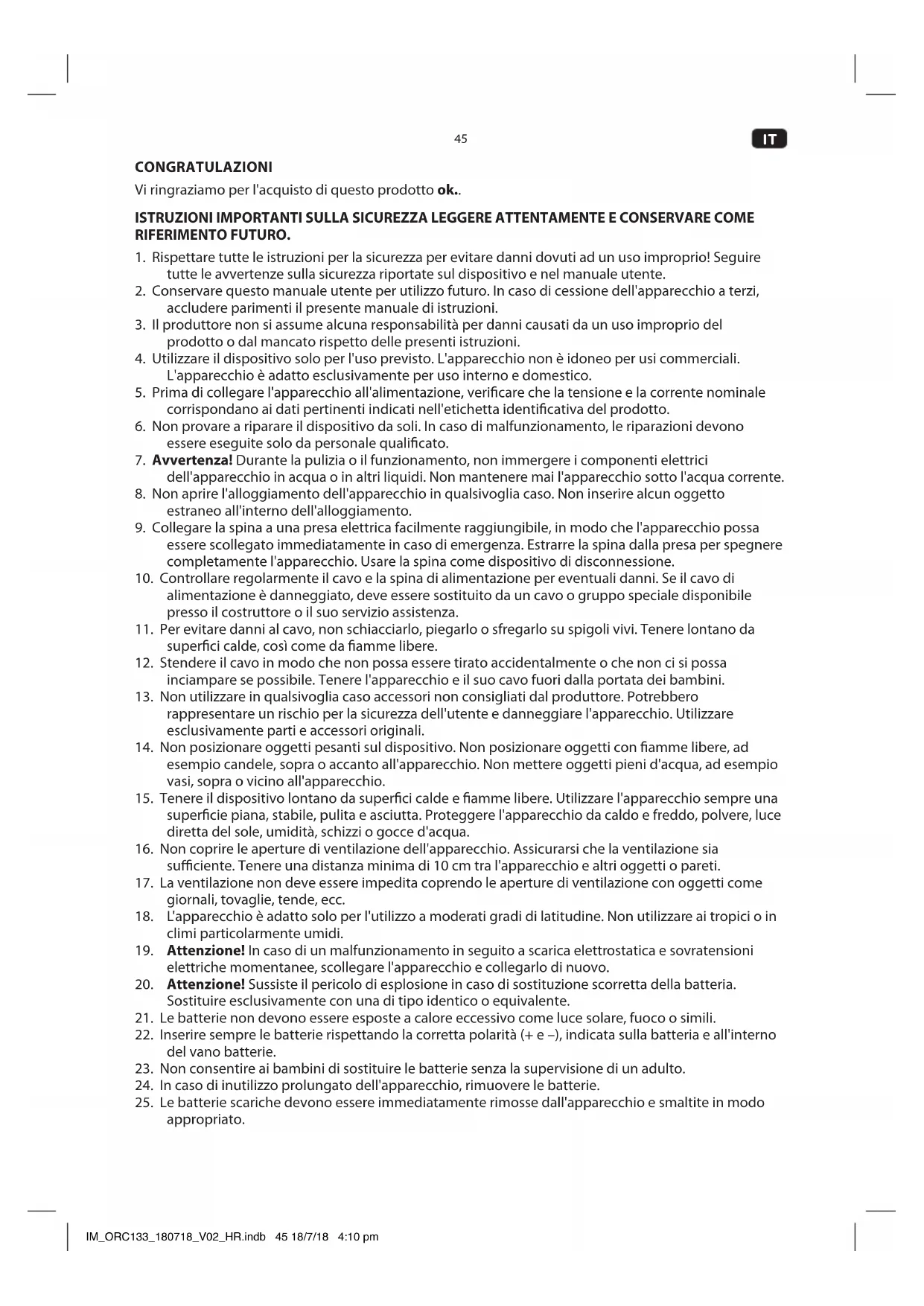 MANUALE UTENTE ORC 133PK OK