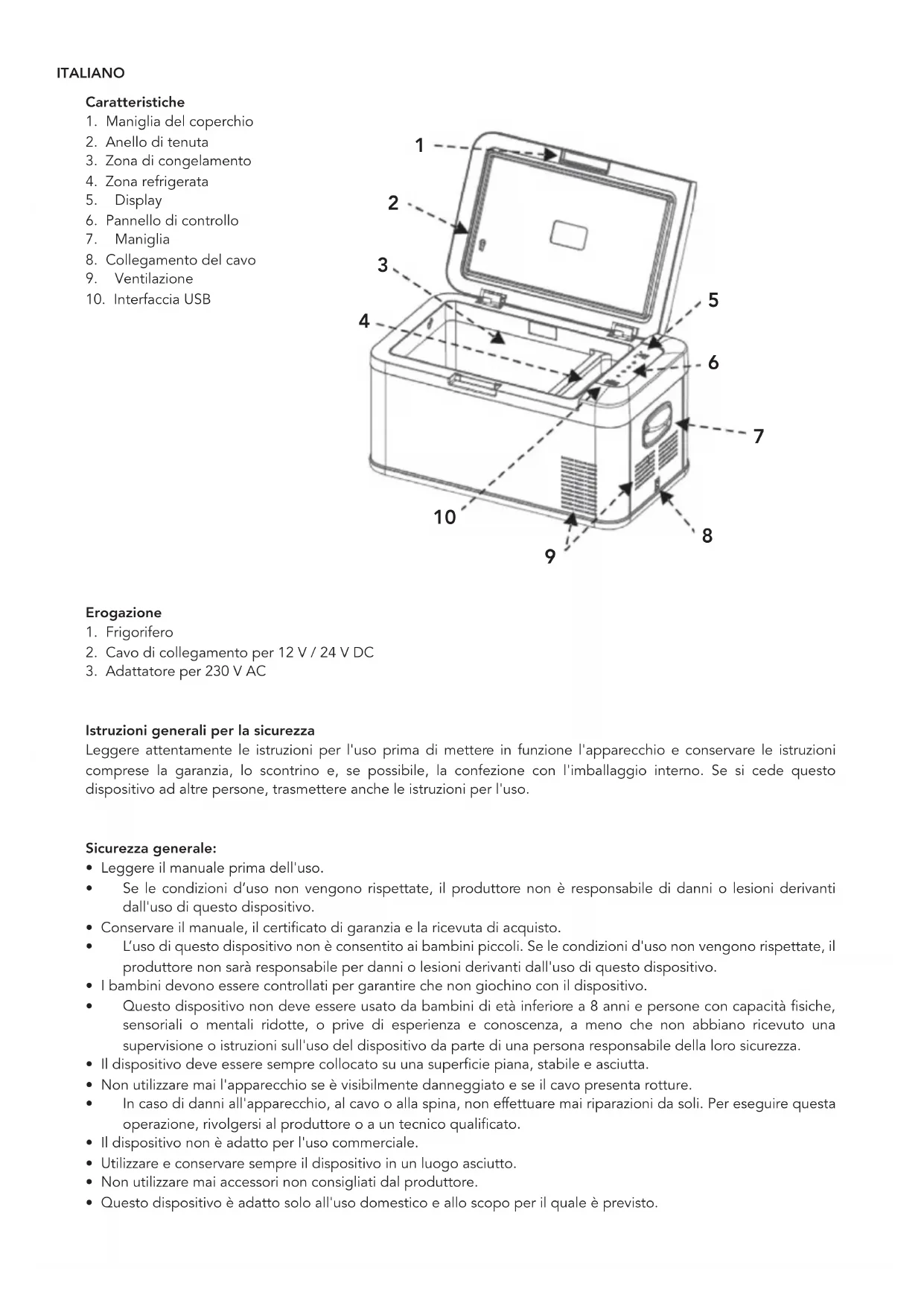 - Questo dispositivo è adatto solo all'uso domestico e allo scopo per il quale è previsto. ITALIANOSicurezza in uso