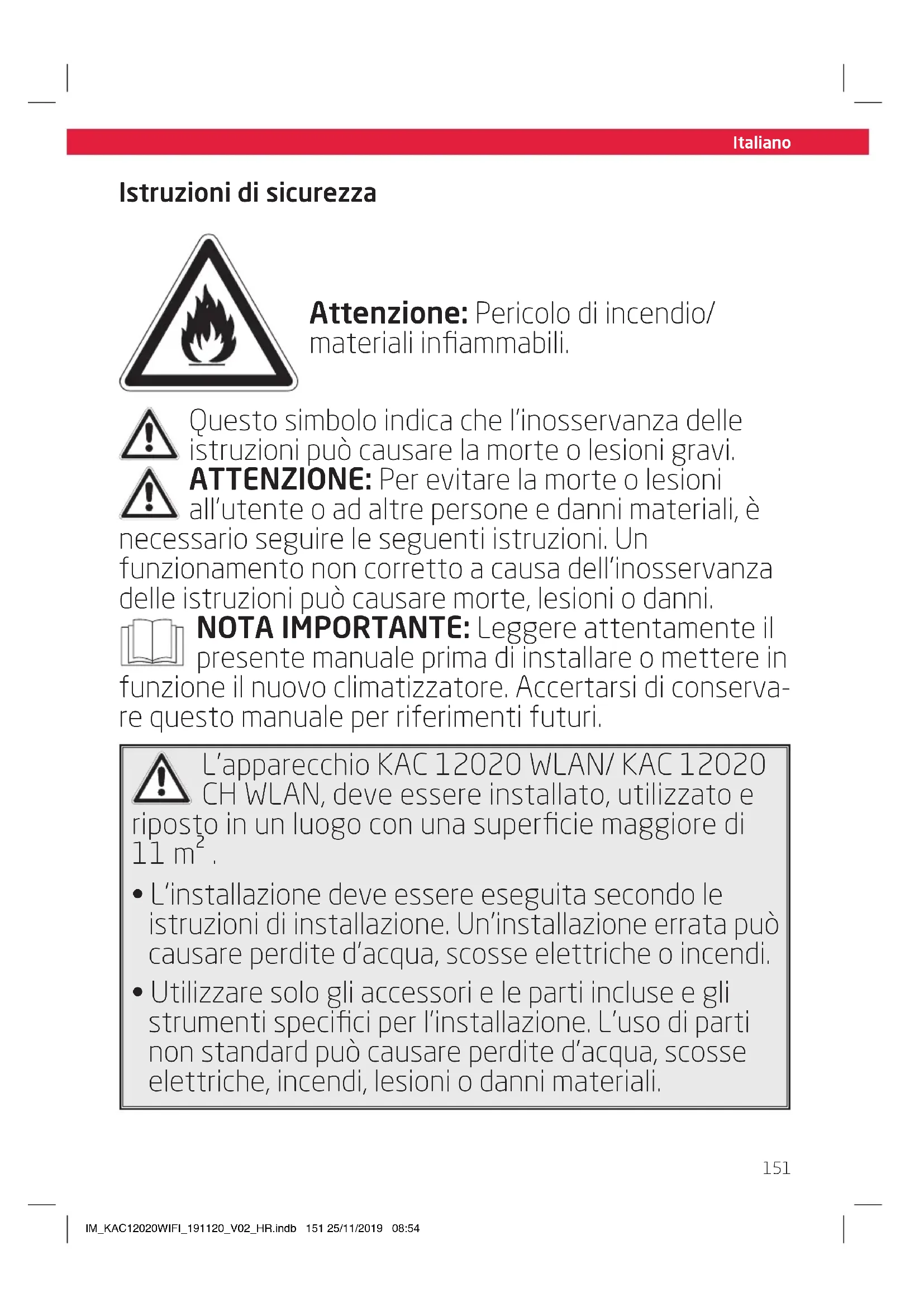 - La disinstallazione e il riciclaggio del prodotto deve essere eseguito da un tecnico certificato. IM_KAC12020WIFI_191120_V02_HR.indb 160 25/11/2019 08:54Italiano