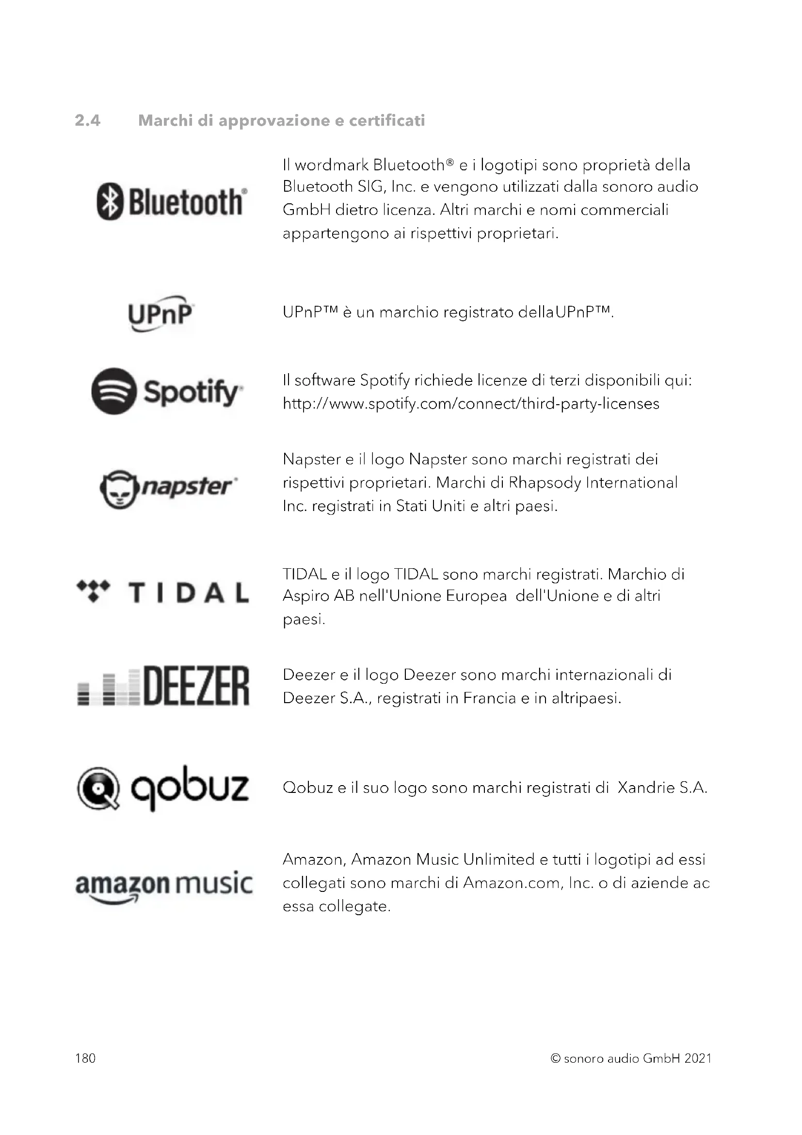 Il wordmark Bluetooth® e i logotipi sono proprietà della Bluetooth SIG, Inc. e vengono utilizzati dalla sonoro audio GmbH dietro licenza. Altri marchi e nomi commerciali appartengono ai rispettivi proprietari.