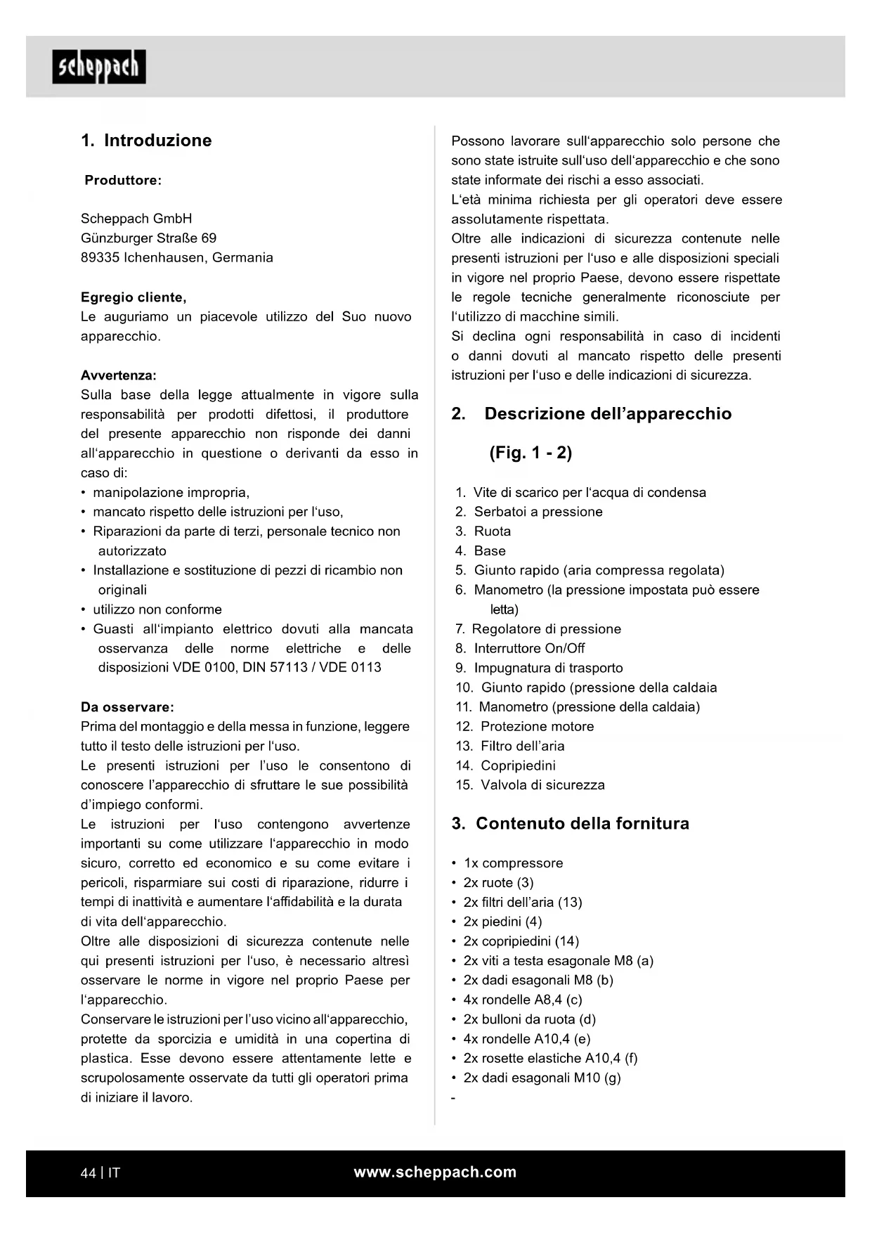 HC104DC - Compressore SCHEPPACH - Manuale utente e istruzioni gratuiti