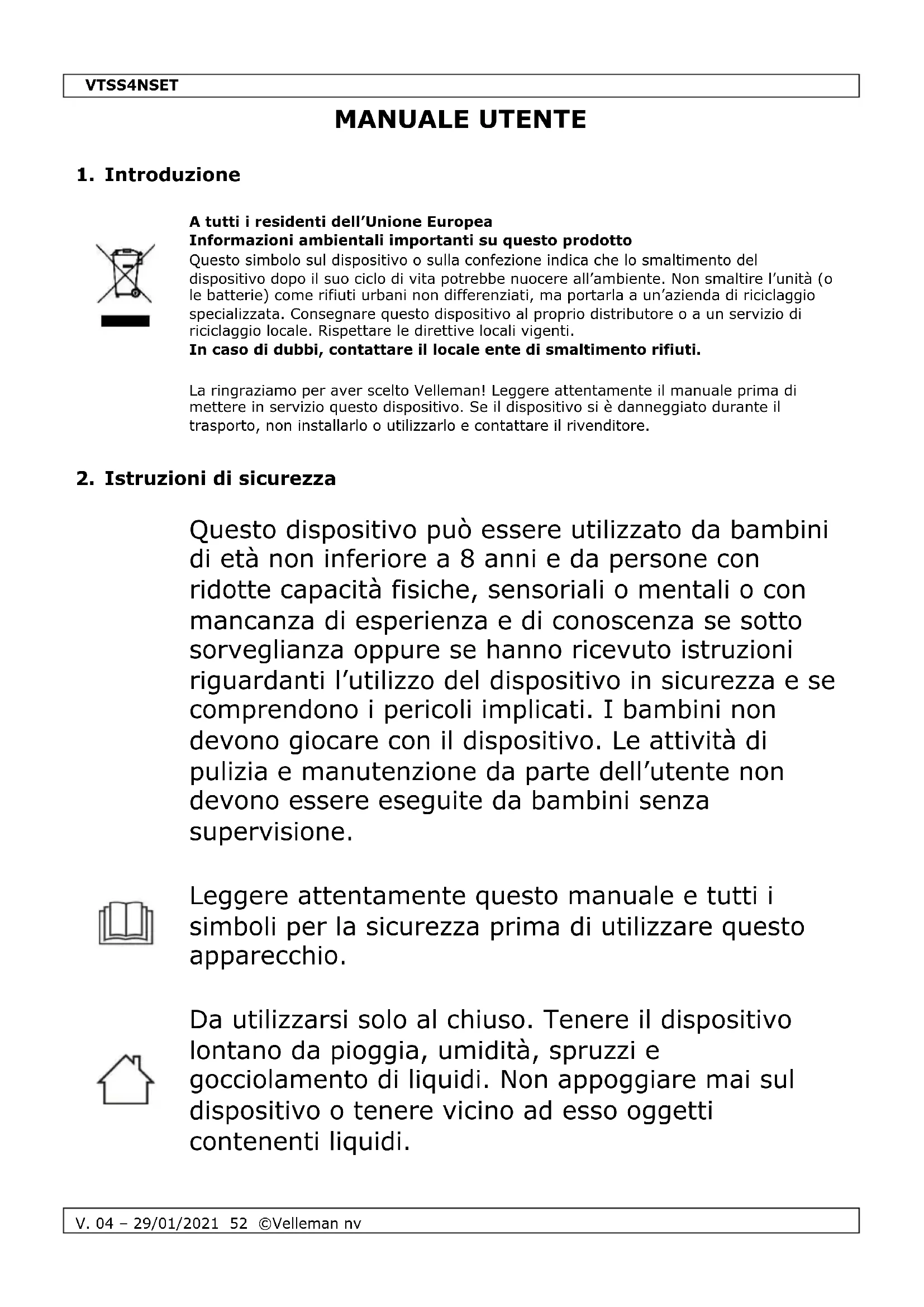 MANUALE UTENTE VTSS4NSET VELLEMAN