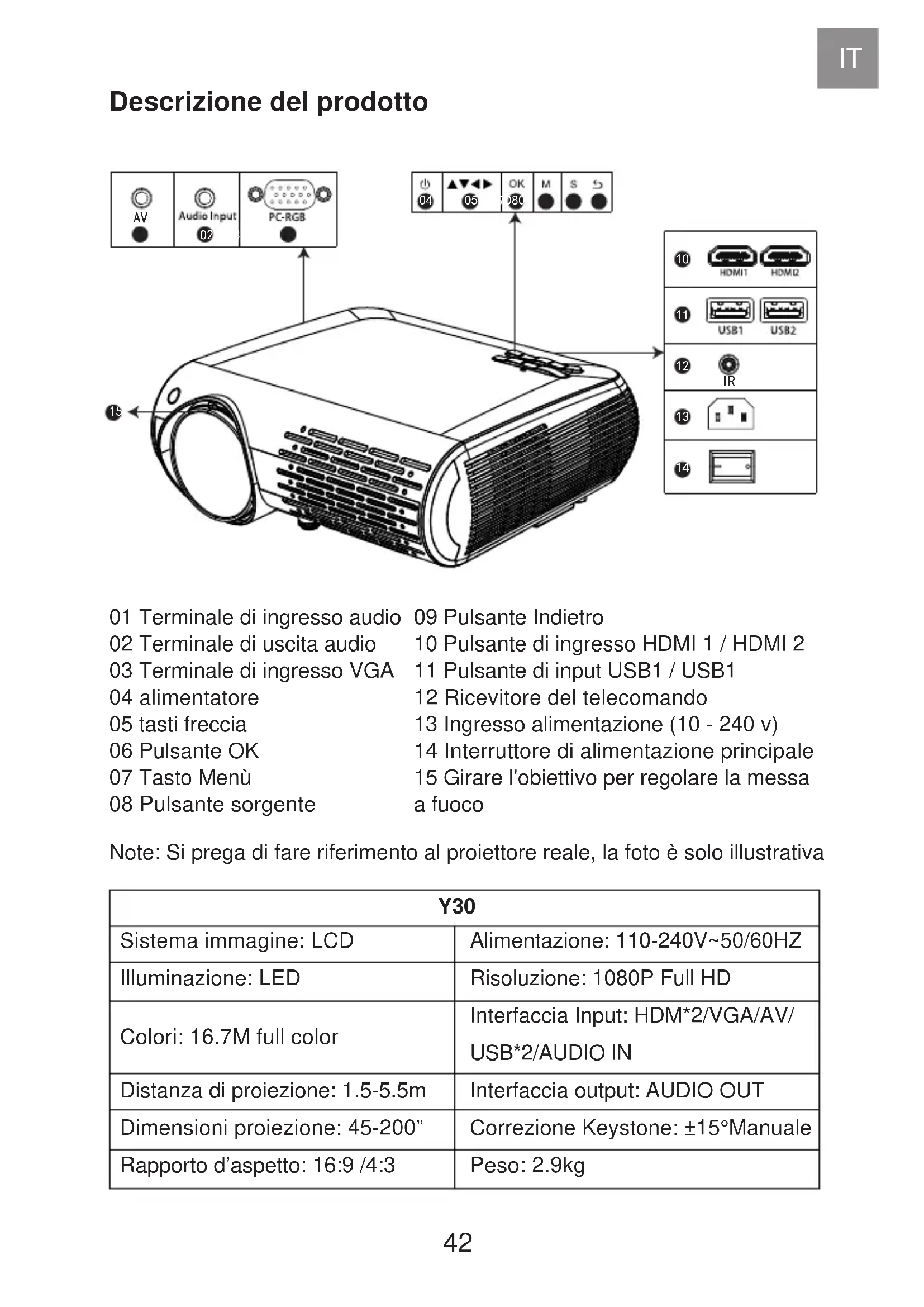 Scarica le istruzioni per il tuo Proiettore in formato PDF gratuitamente! Trova il tuo manuale Y30 - Yaber e riprendi in mano il tuo dispositivo elettronico. In questa pagina sono pubblicati tutti i documenti necessari per l'utilizzo del tuo dispositivo. Y30 del marchio Yaber.