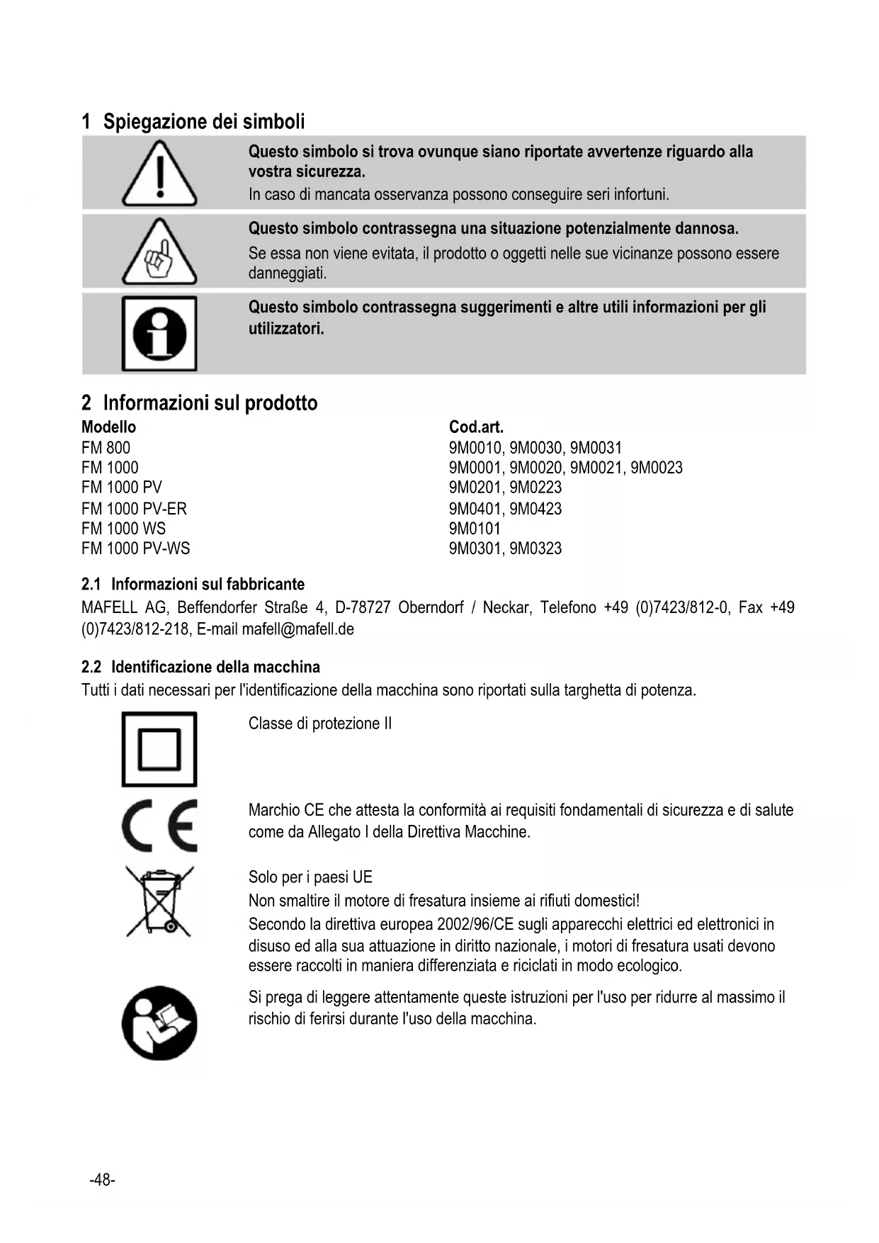 MANUALE UTENTE FM 1000 Mafell