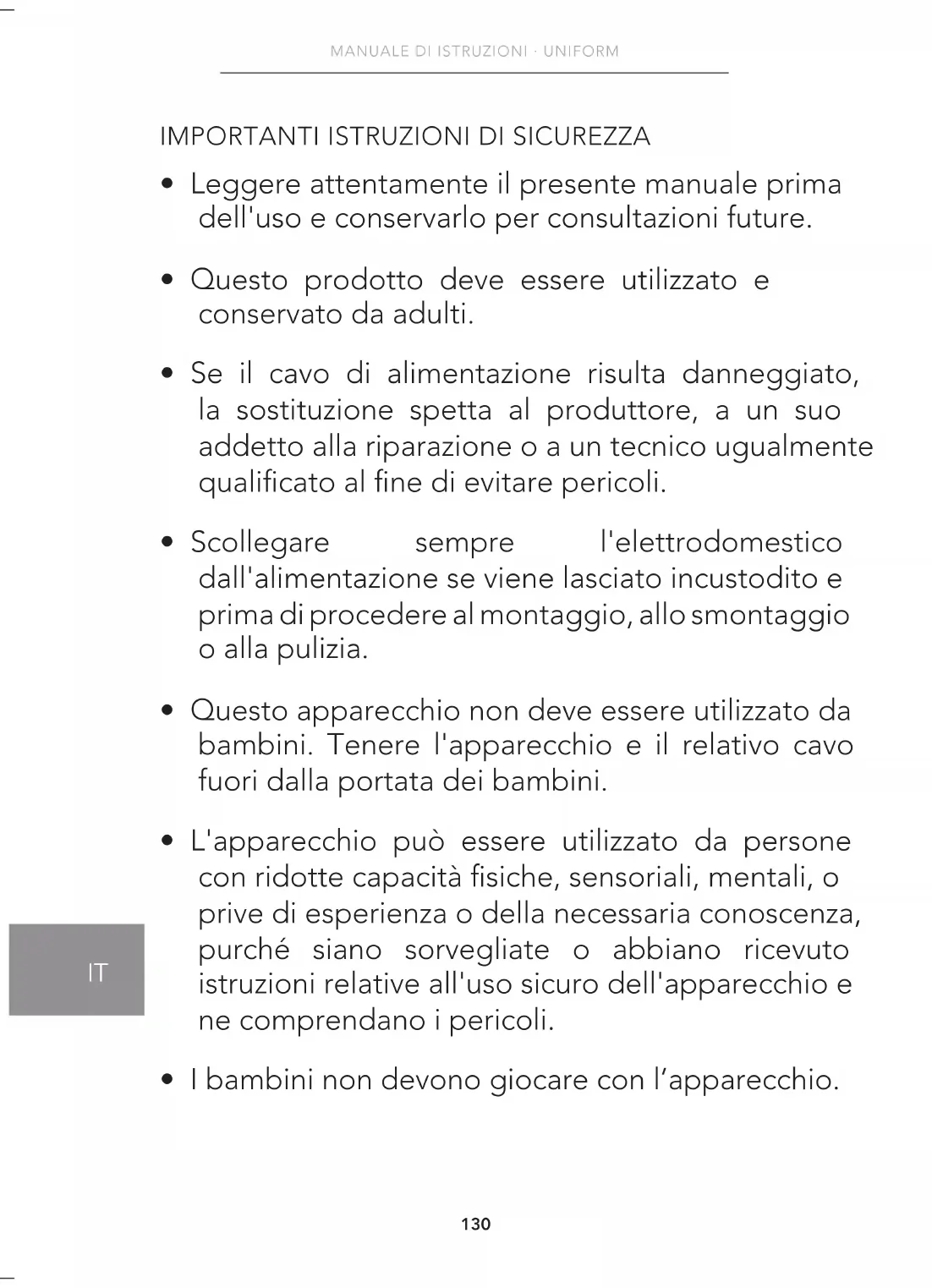- I bambini non devono giocare con l’apparecchio.131
