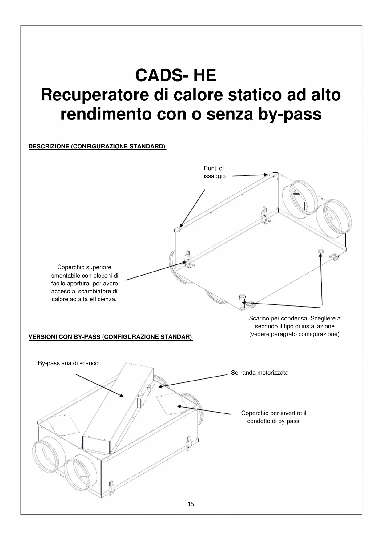 CADS- HE Recuperatore di calore statico ad alto rendimento con o senza by-pass DESCRIZIONE (CONFIGURAZIONE STANDARD)
