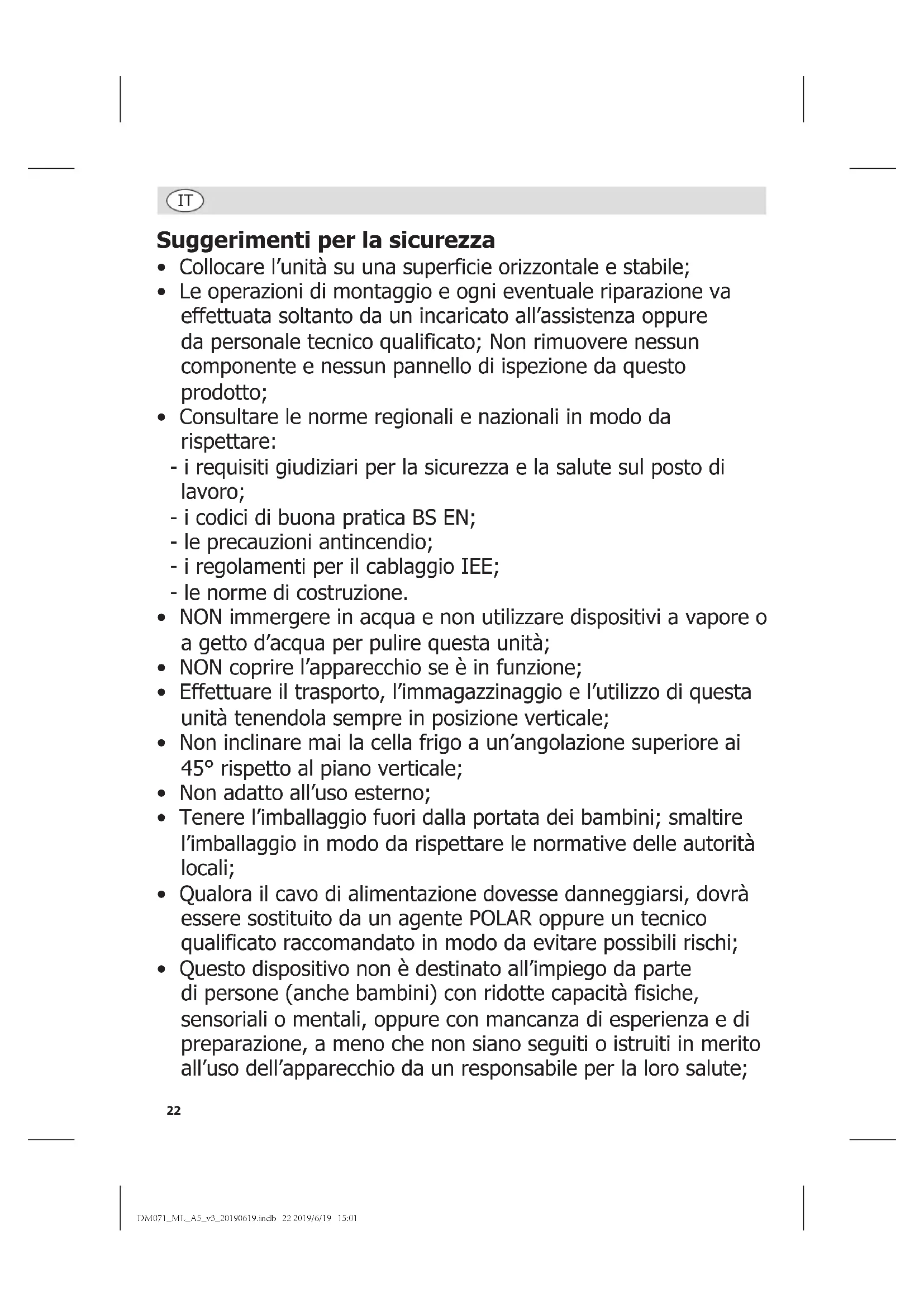 - Questo dispositivo non è destinato all’impiego da parte di persone (anche bambini) con ridotte capacità fisiche, sensoriali o mentali, oppure con mancanza di esperienza e di preparazione, a meno che non siano seguiti o istruiti in merito all’uso dell’apparecchio da un responsabile per la loro salute; DM071_ML_A5_v3_20190619.indb 22 2019/6/19 15:0123