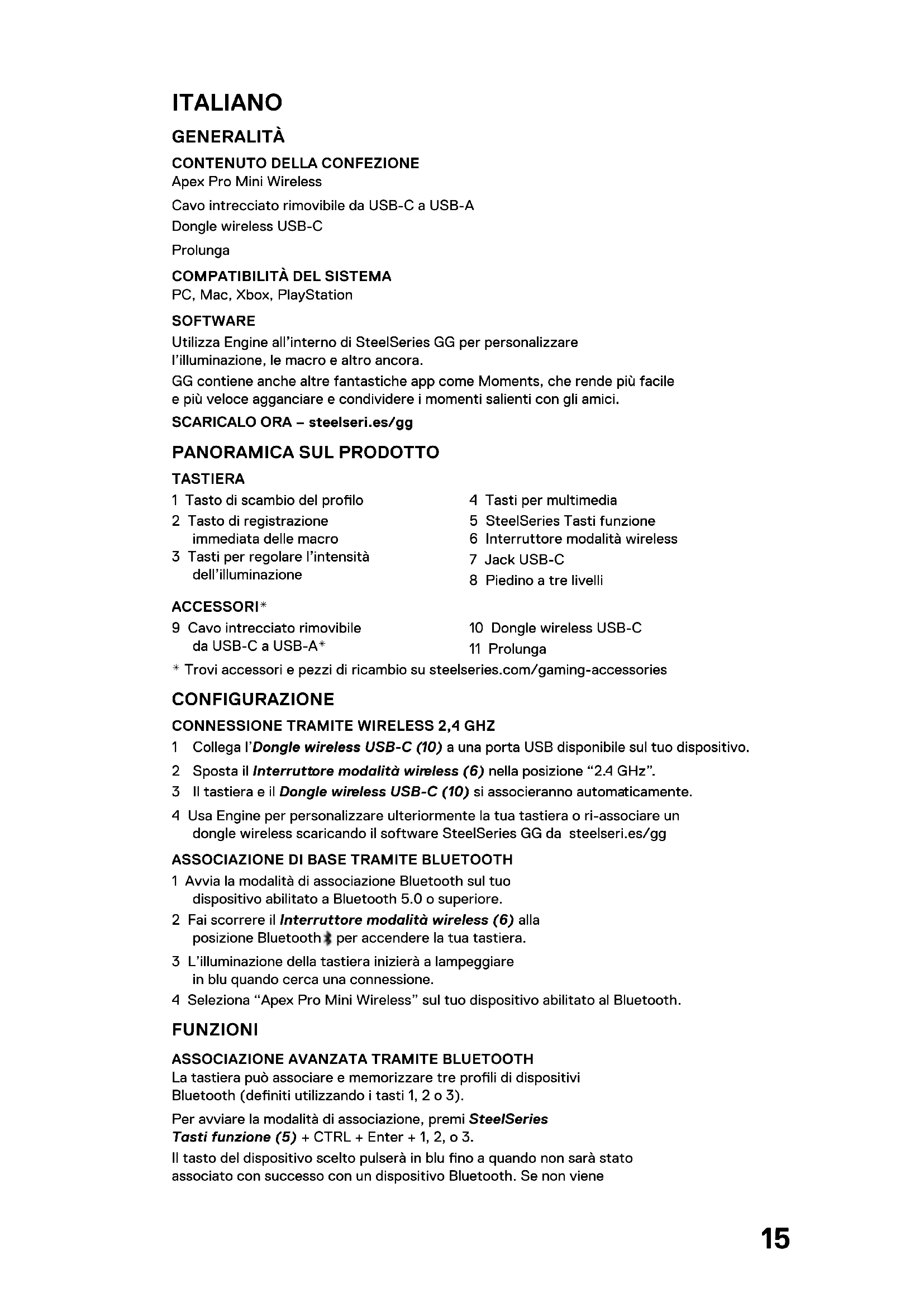 MANUALE UTENTE Apex Pro Mini Wireless STEELSERIES
