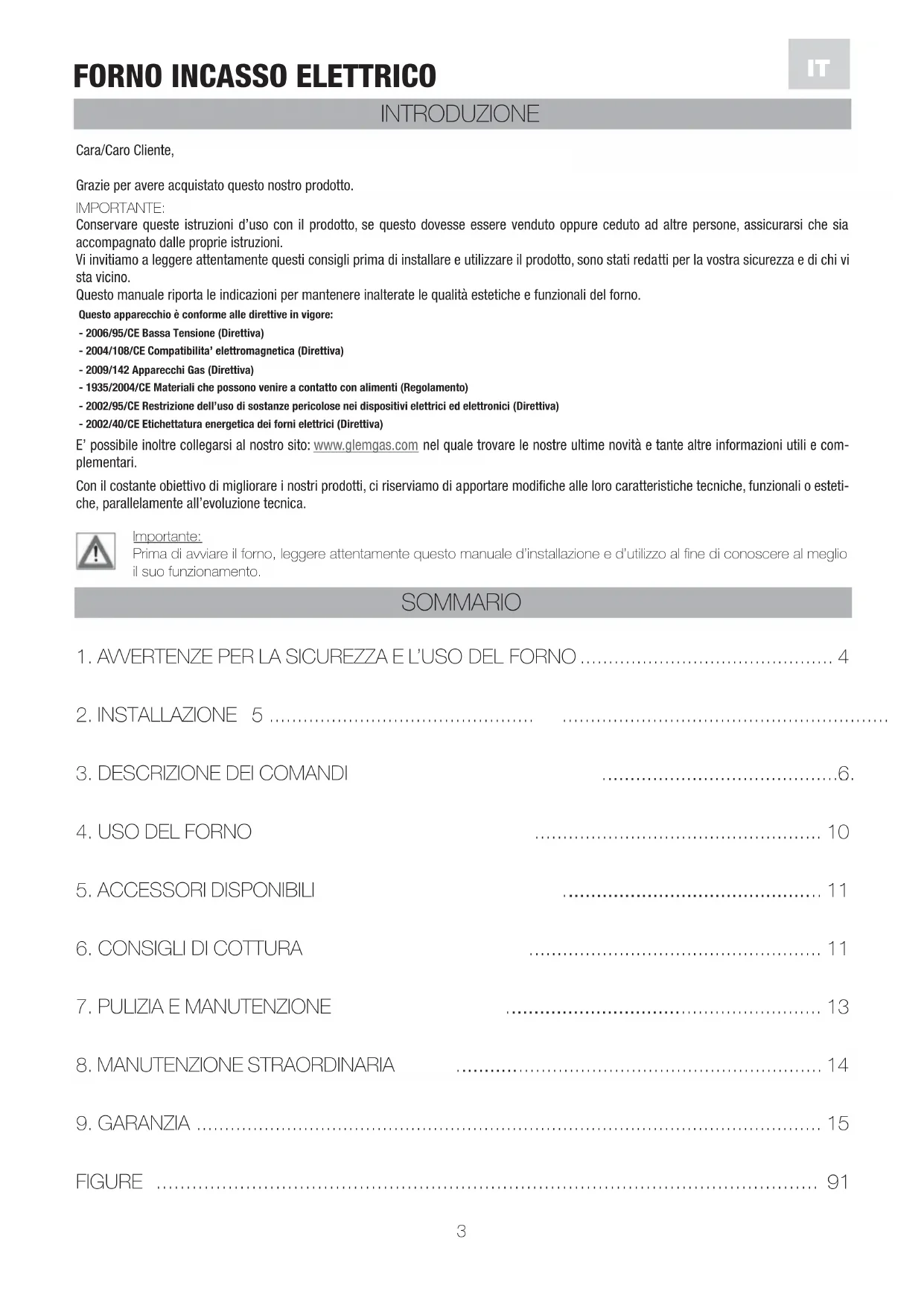 Questo manuale riporta leindicazioni permantere inalterate le qualita estetiche e funzionali del forno.