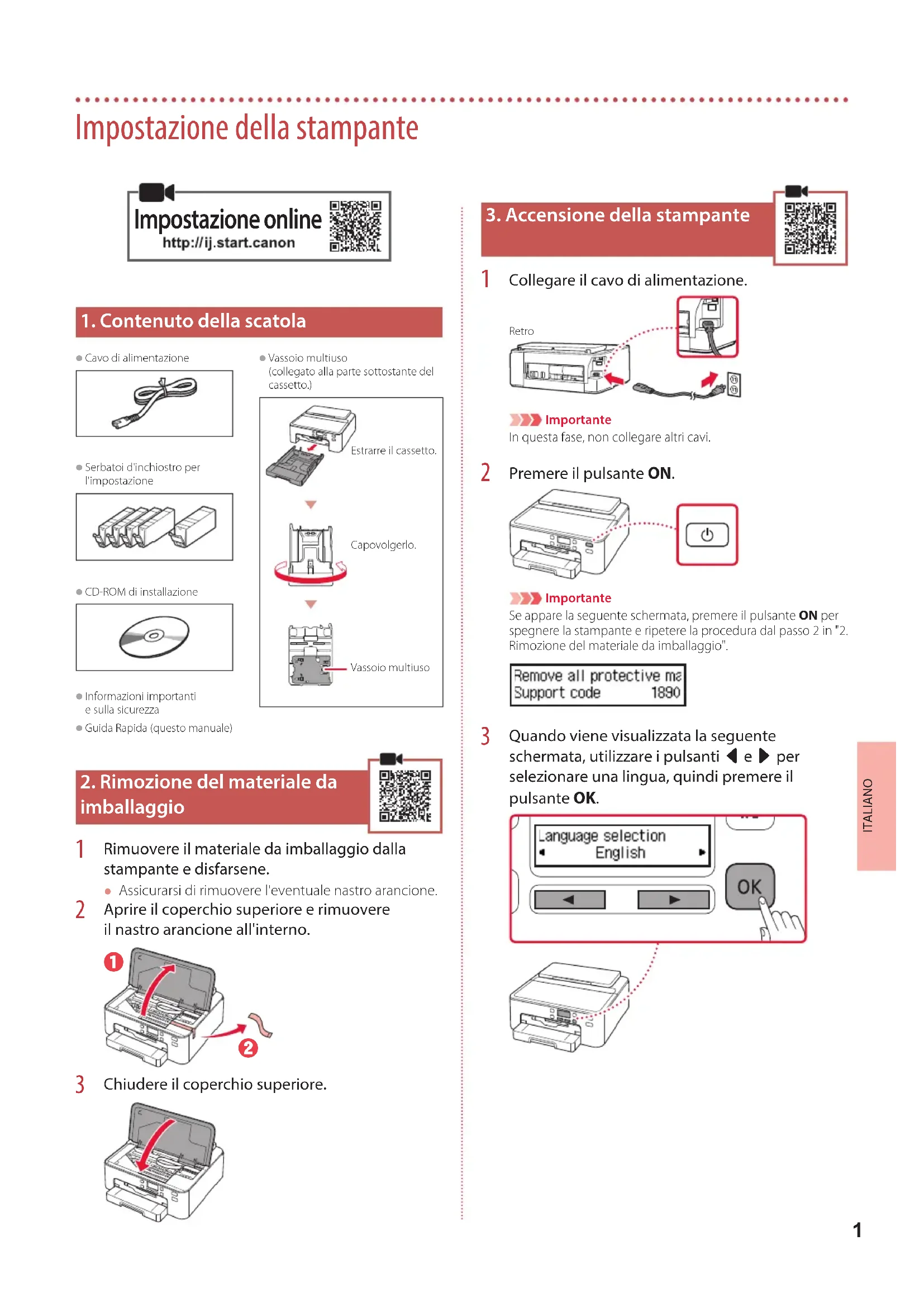 3. Accensione della stampante