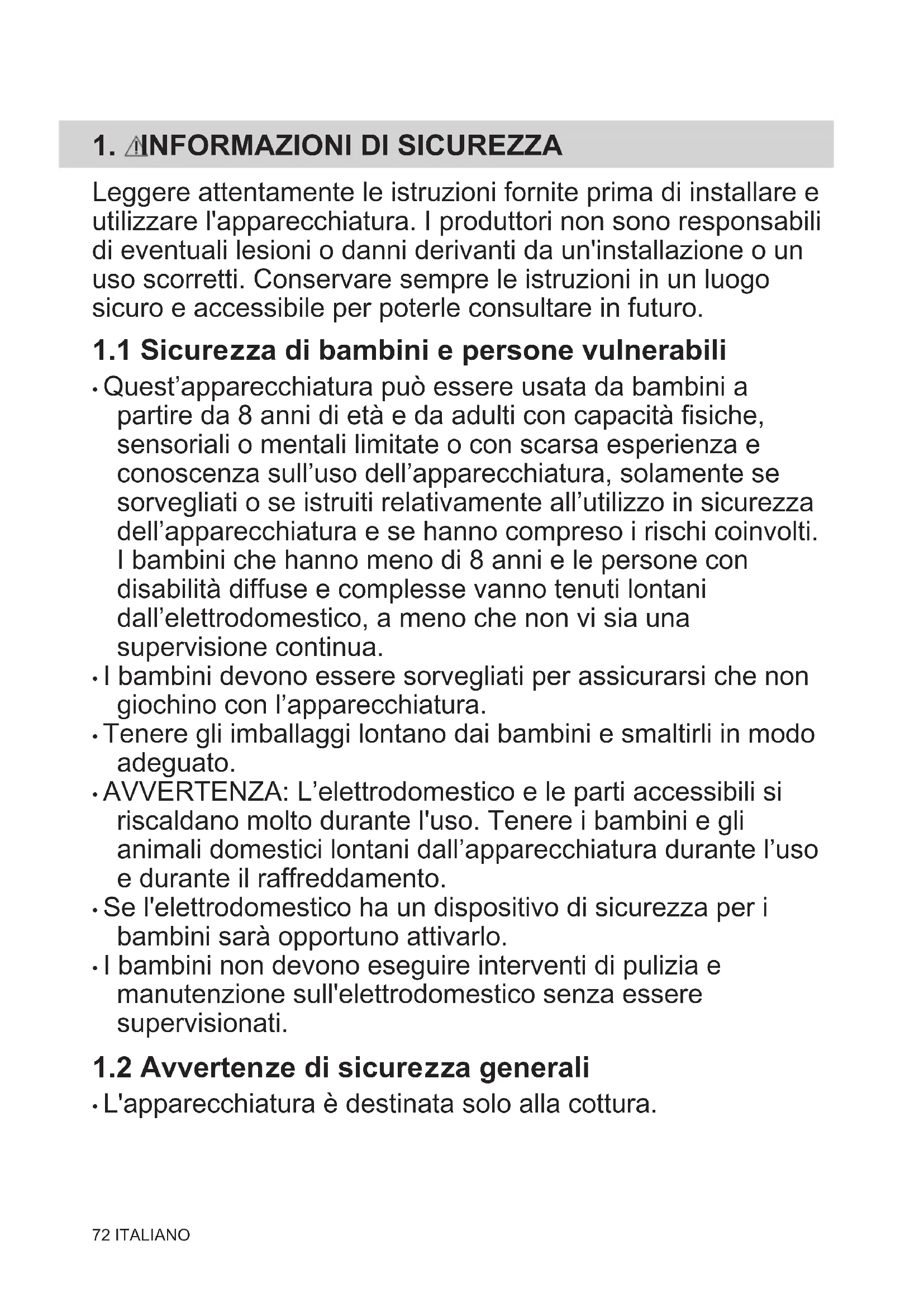 1.2 Avvertenze di sicurezza generali