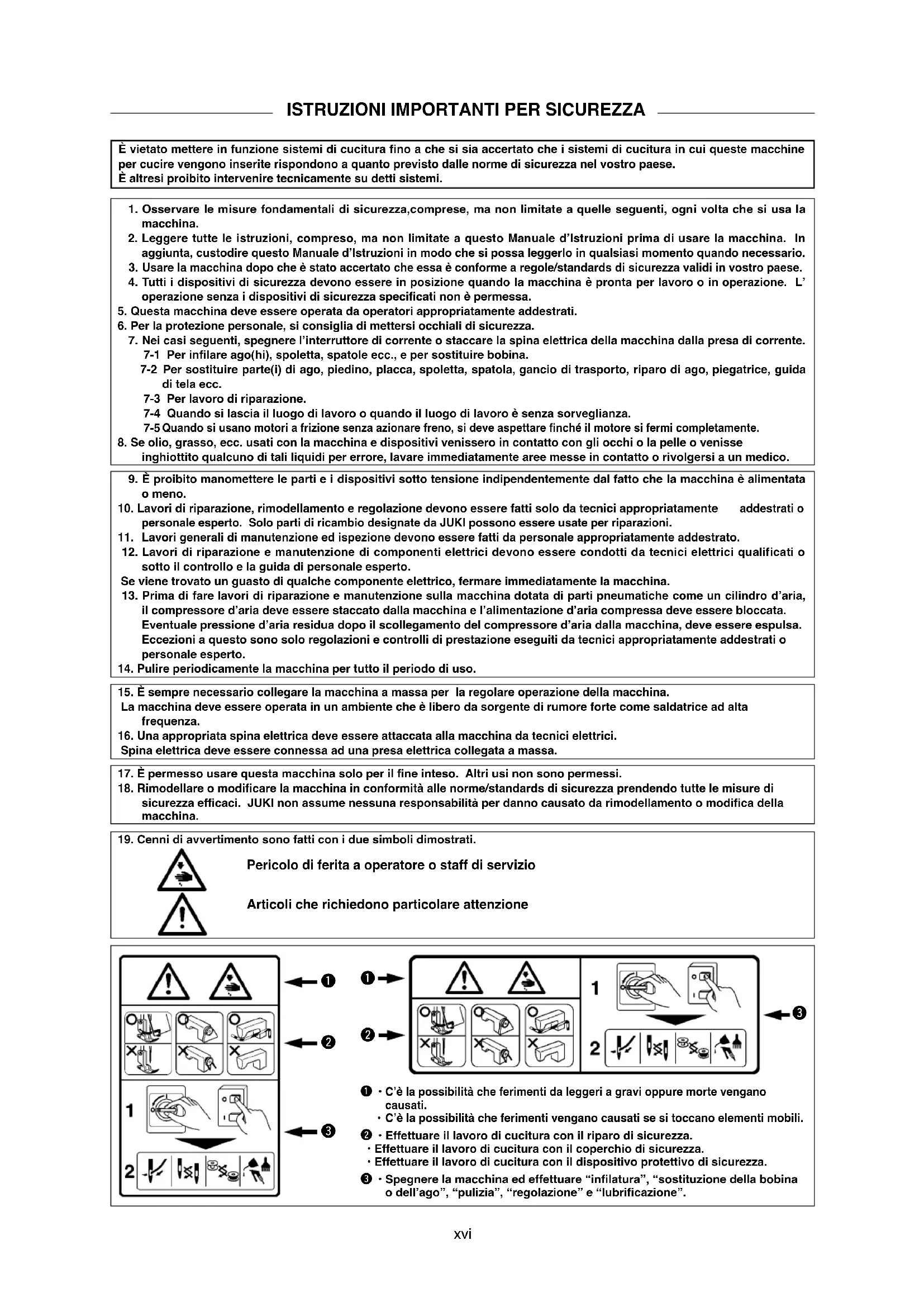 È vietato mettere in funzione sistemi di cucitura no a che si sia accertato che i sistemi di cucitura in cui queste macchine per cucire vengono inserite rispondono a quanto previsto dalle norme di sicurezza nel vostro paese. È altresi proibito intervenire tecnicamente su detti sistemi.