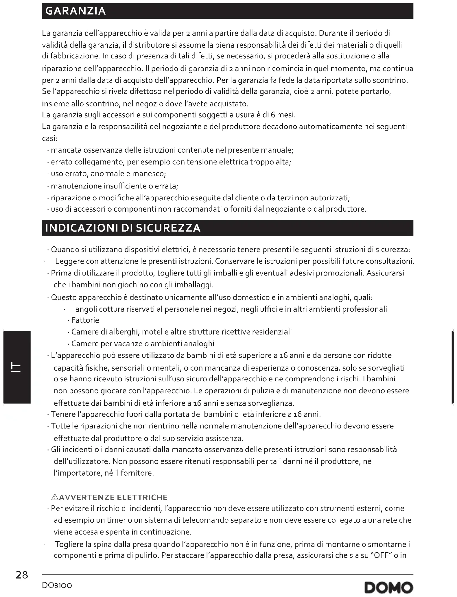 MANUALE UTENTE DO3100 DOMO