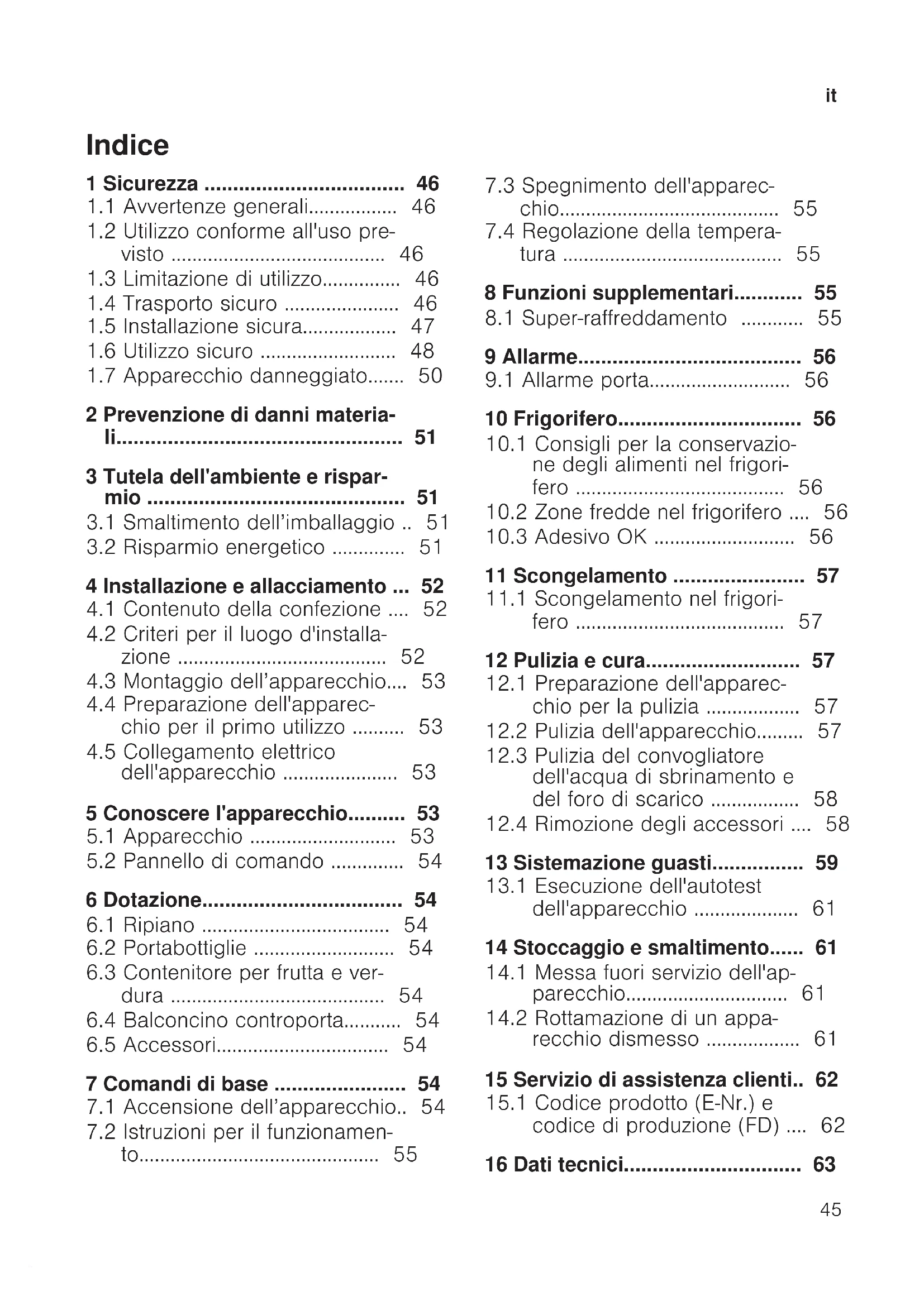codice di produzione (FD) .... 62 16 Dati tecnici...............................63it Sicurezza