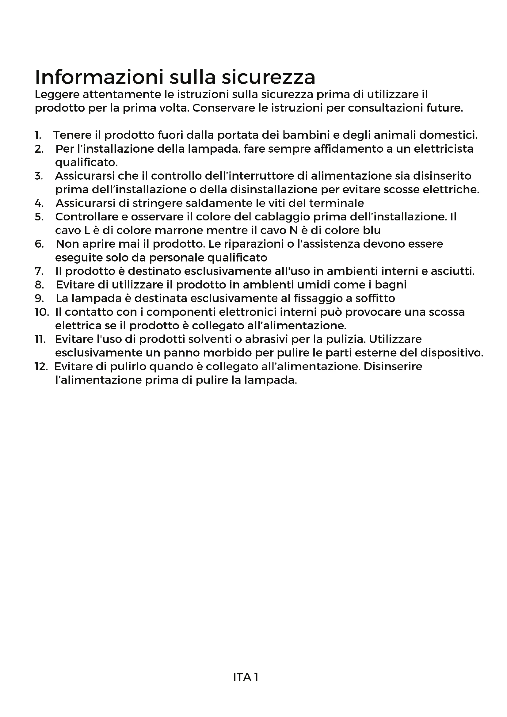 9. La lampada è destinata esclusivamente al fissaggio a soffitto