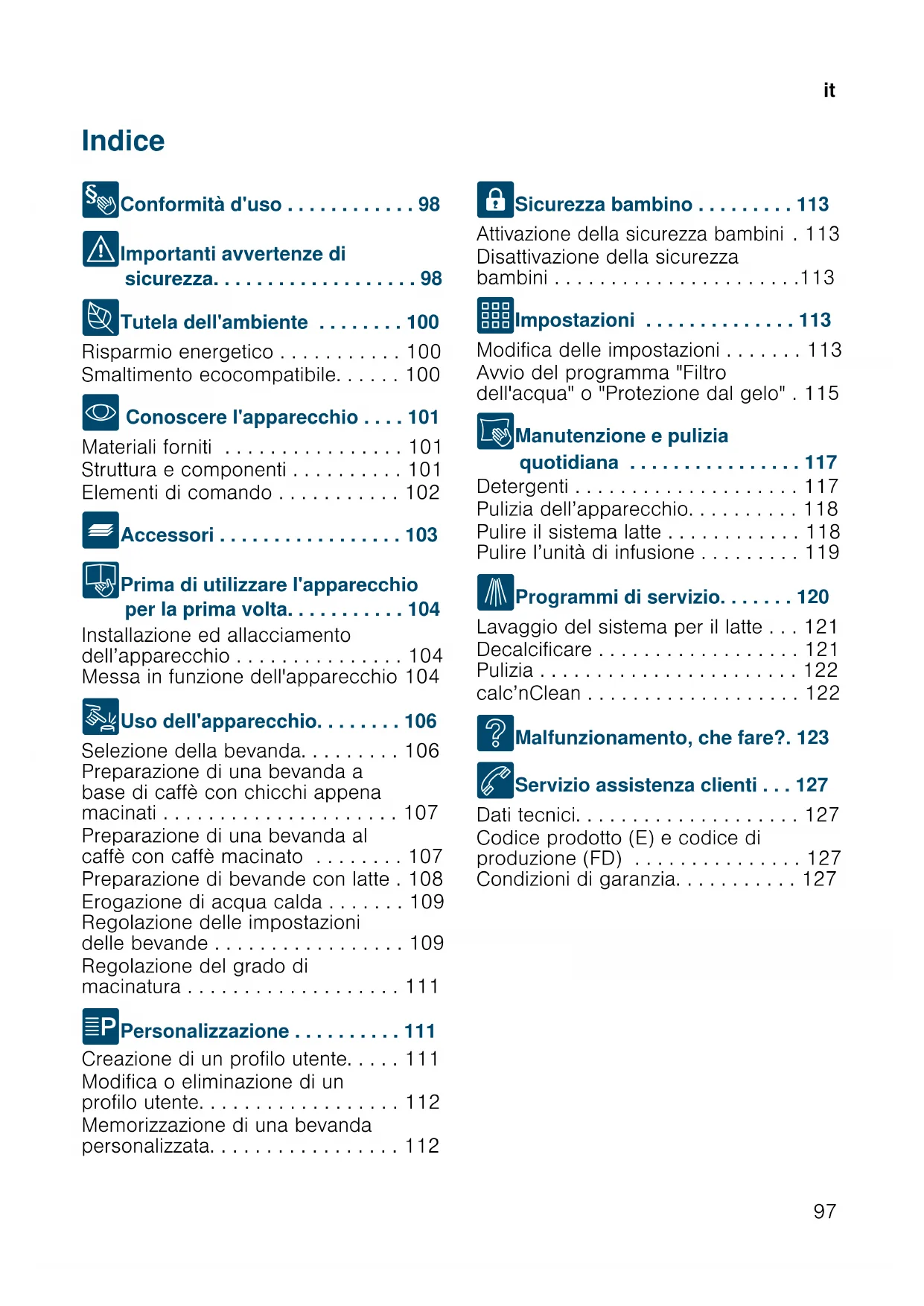 Prima diutilizzare l'apparecchio per la prima volta. 104