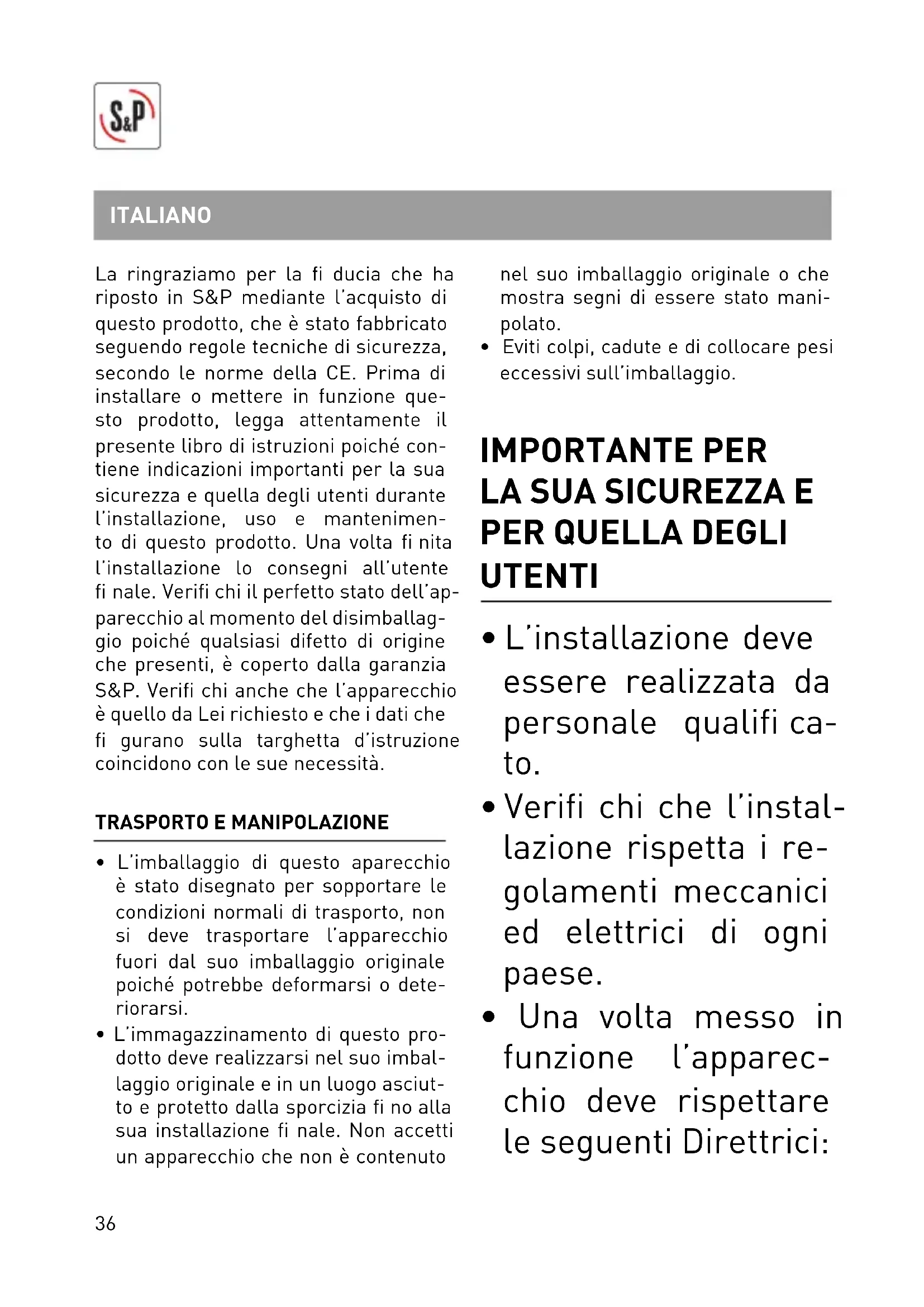 SICUREZZA NELL’INSTALLAZIONE