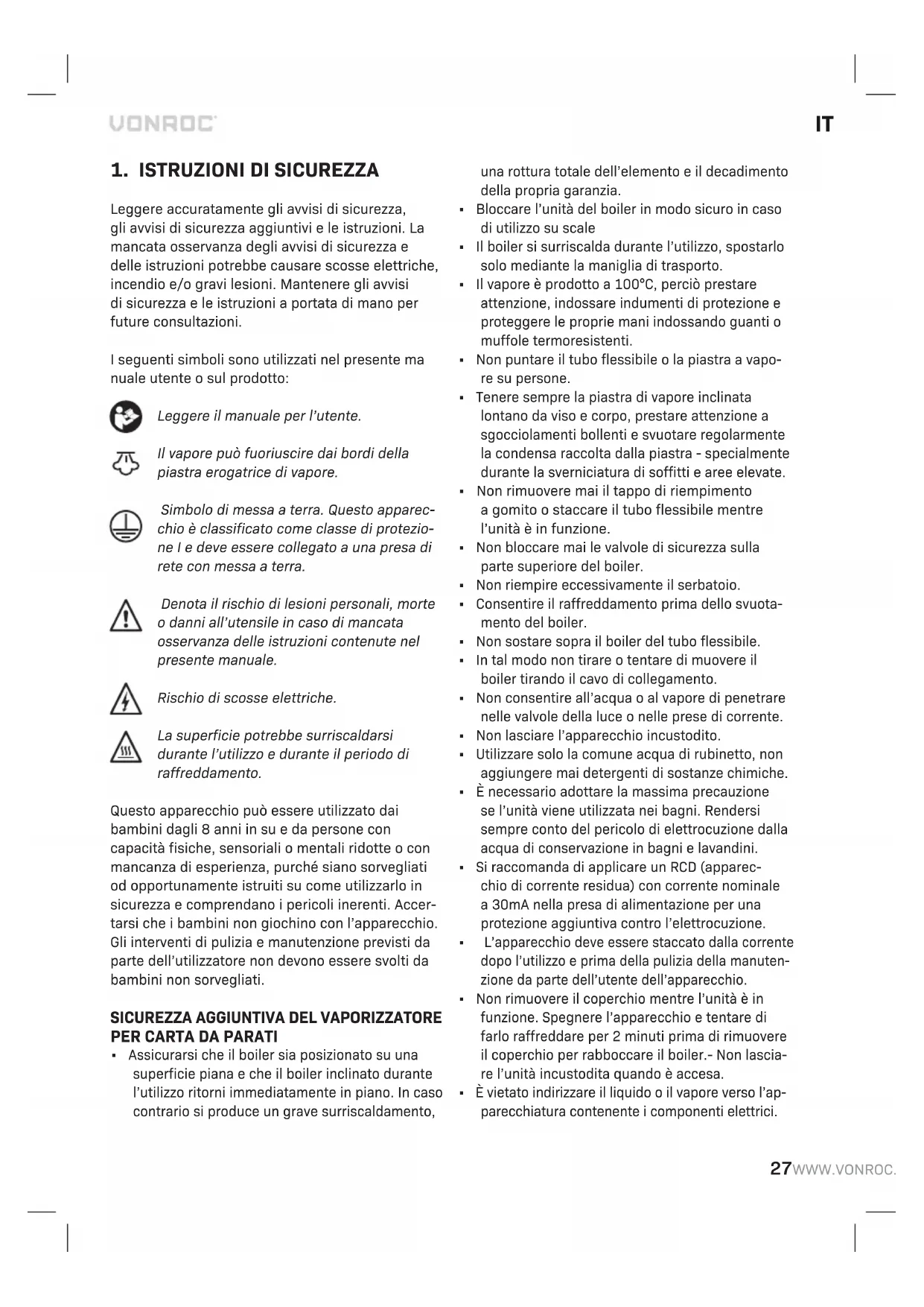 - Il vapore è prodotto a 100°C, perciò prestare attenzione, indossare indumenti di protezione e proteggere le proprie mani indossando guanti o muffole termoresistenti.