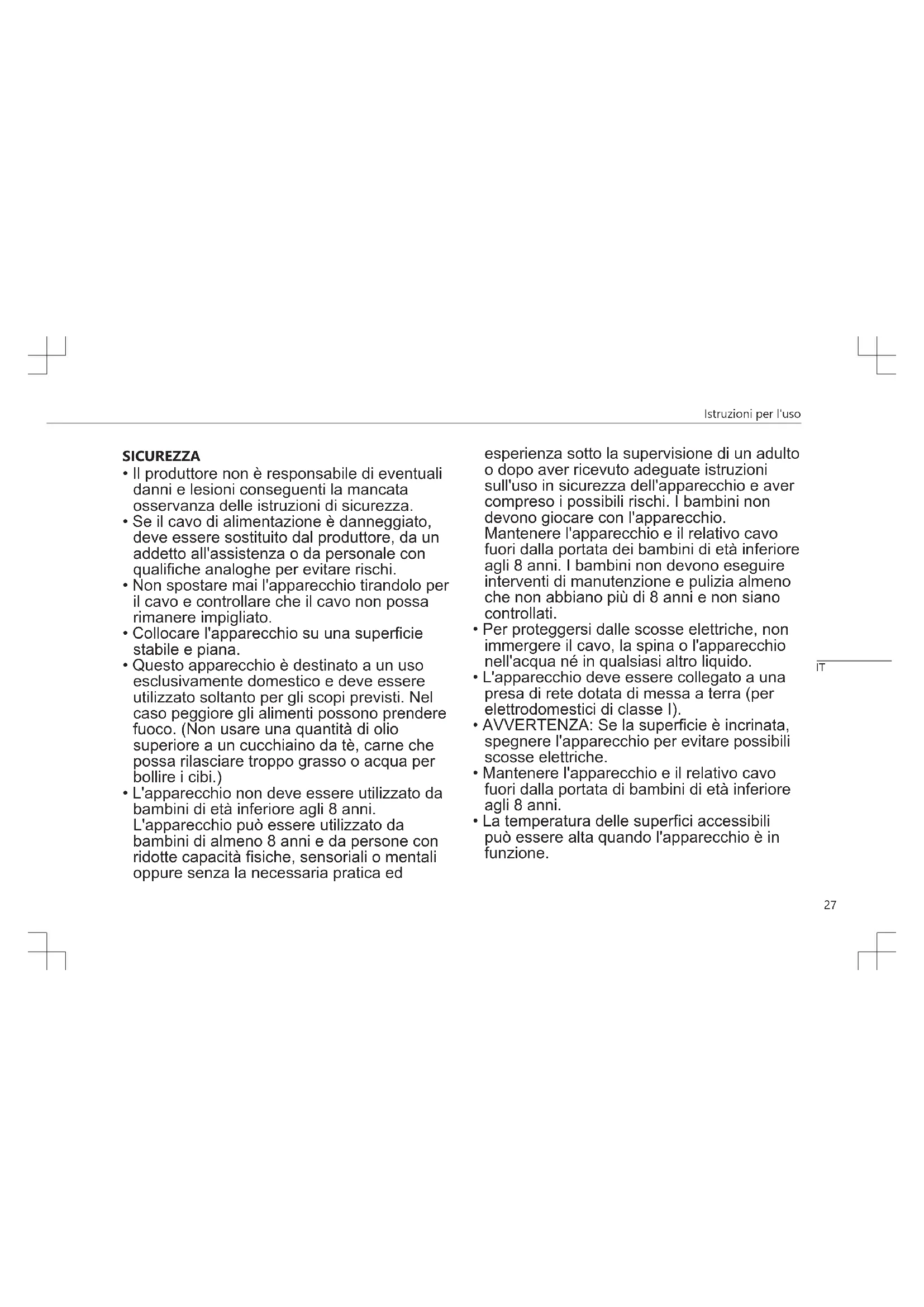 - La temperatura delle superfici accessibili può essere alta quando l'apparecchio è in funzione. ITIstruzioni per l'uso