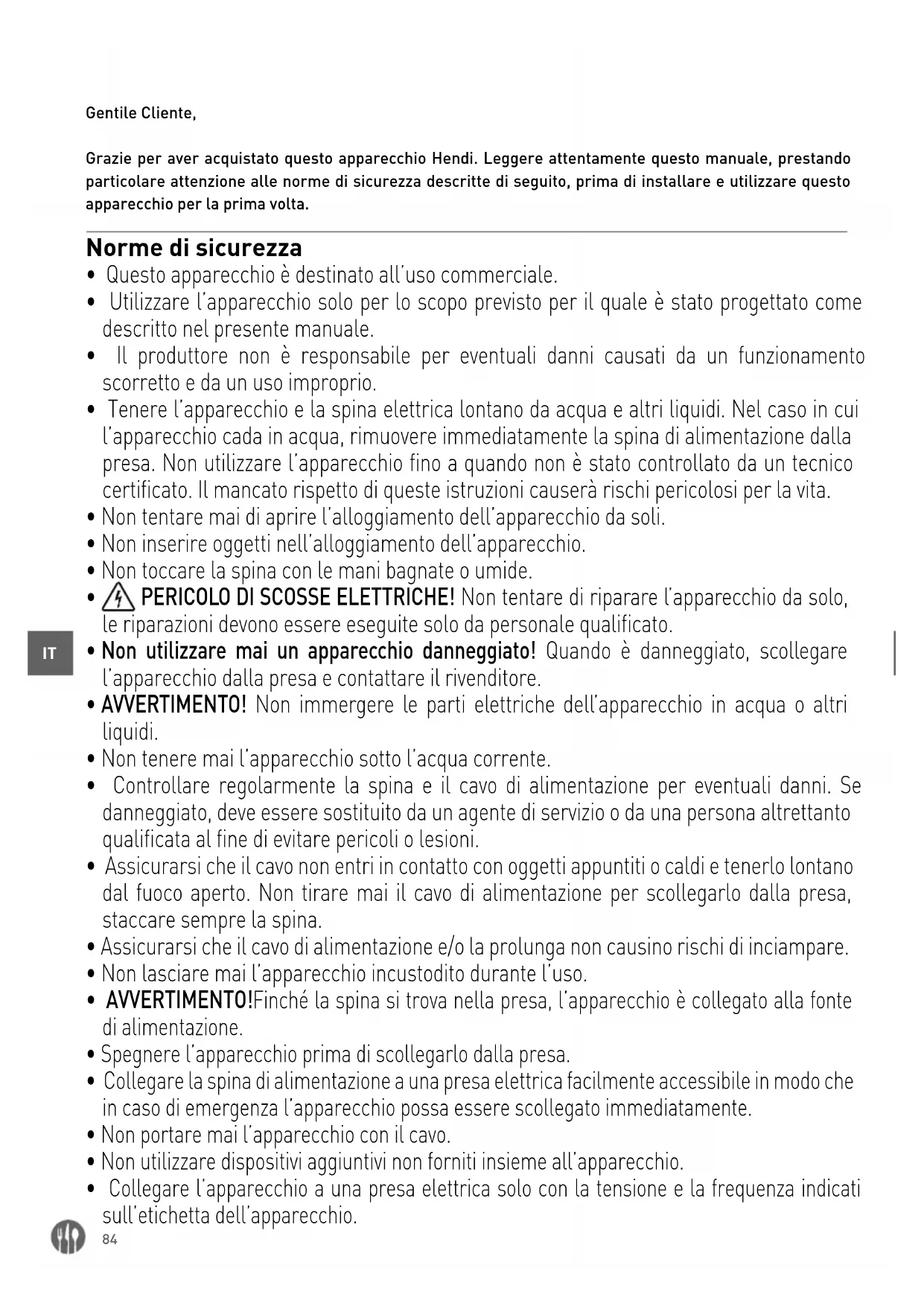 Grazie per aver acquistato quello apparecchio Hendi. Leggere attendamente quello manuale, prestando particolare attenzione alle norme di sicurezza descripte di seguito, prima di installare e utilizzare quello apparecchio per la primaolta.
