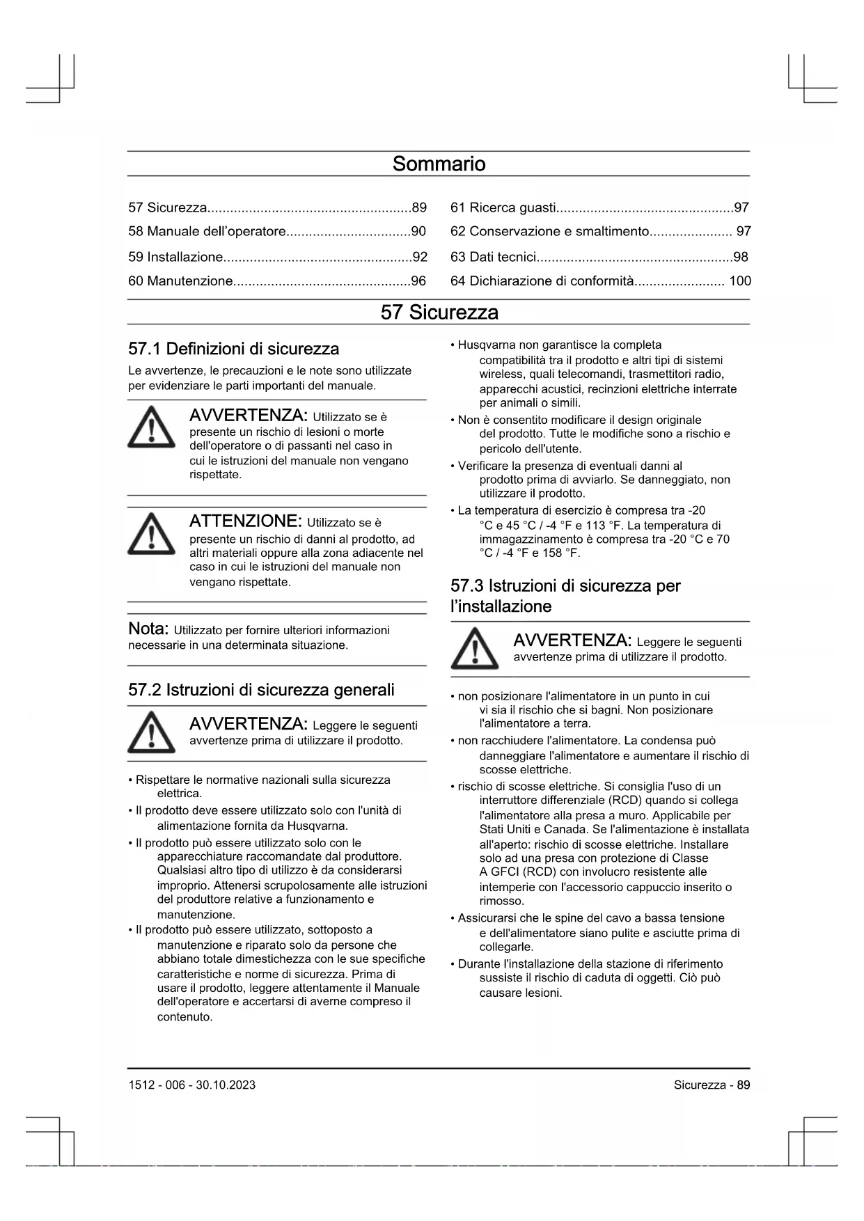 57.3 Istruzioni di sicurezza per