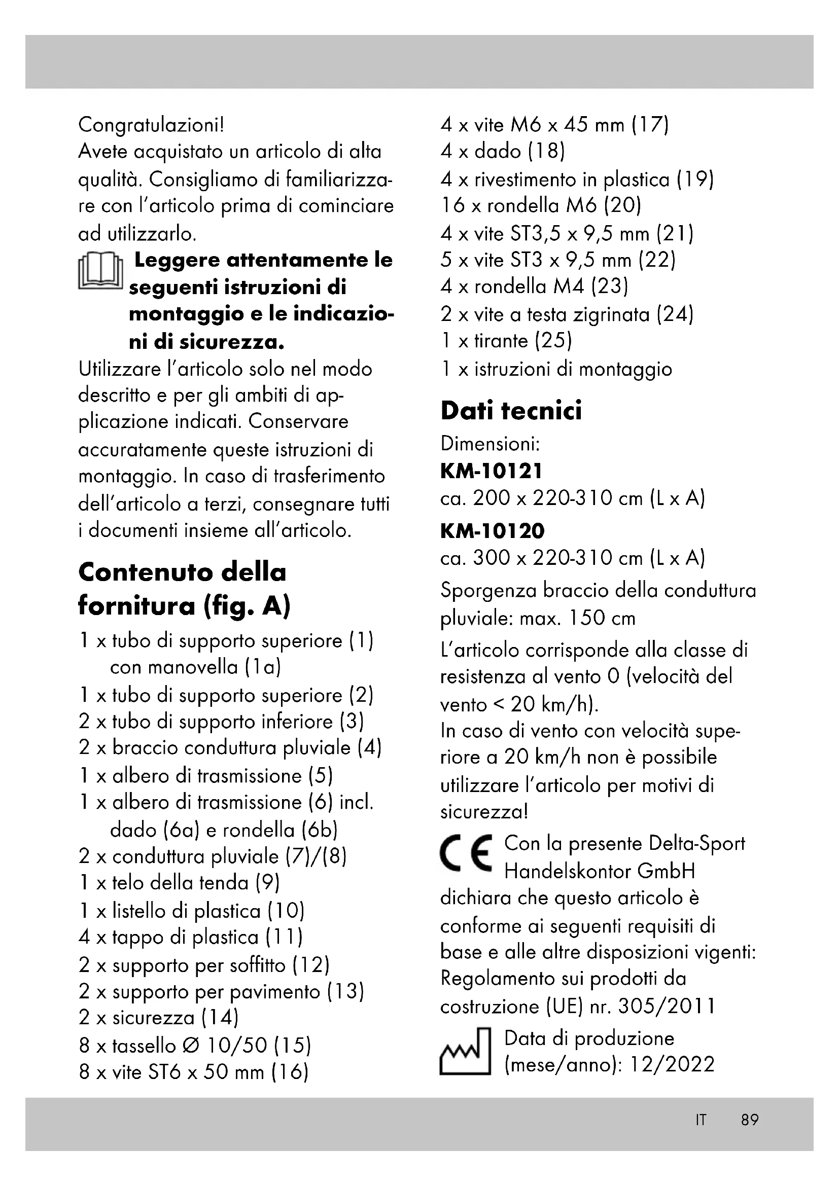 - Questo articolo non può essere utilizzato in caso di condizioni me- teorologiche avverse, ad esempio venti forti, pioggia o neve. IT91IT