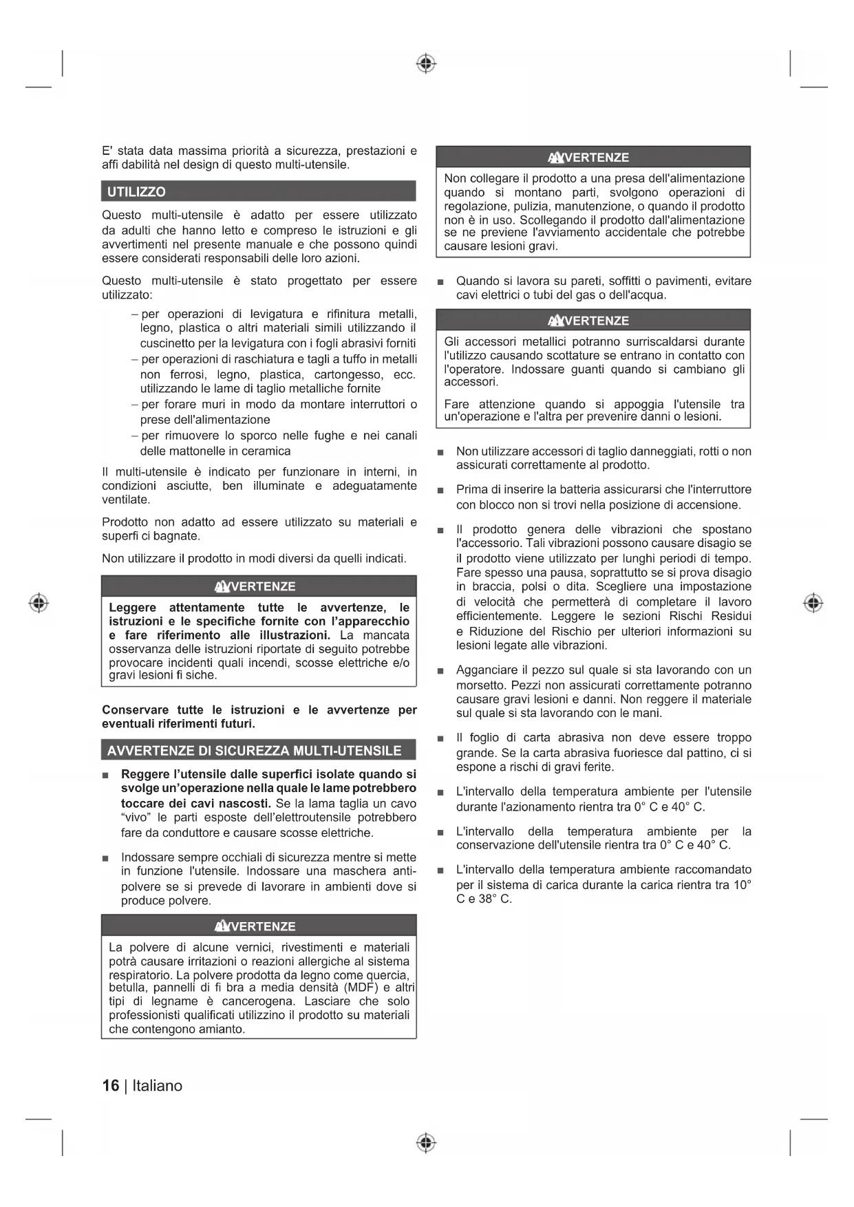 AVVERTENZE DI SICUREZZA MULTI-UTENSILE