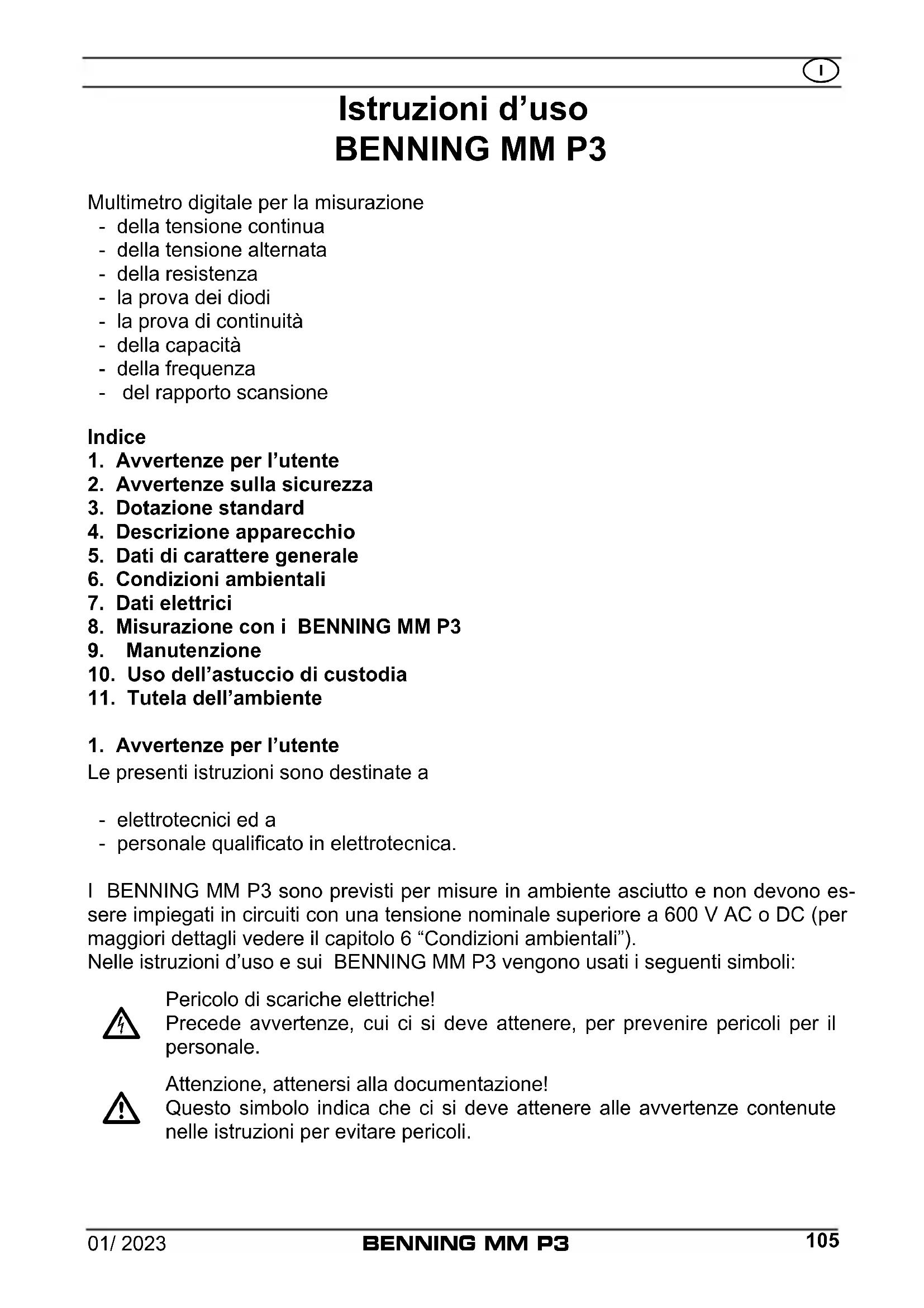 MANUALE UTENTE MM P3 BENNING
