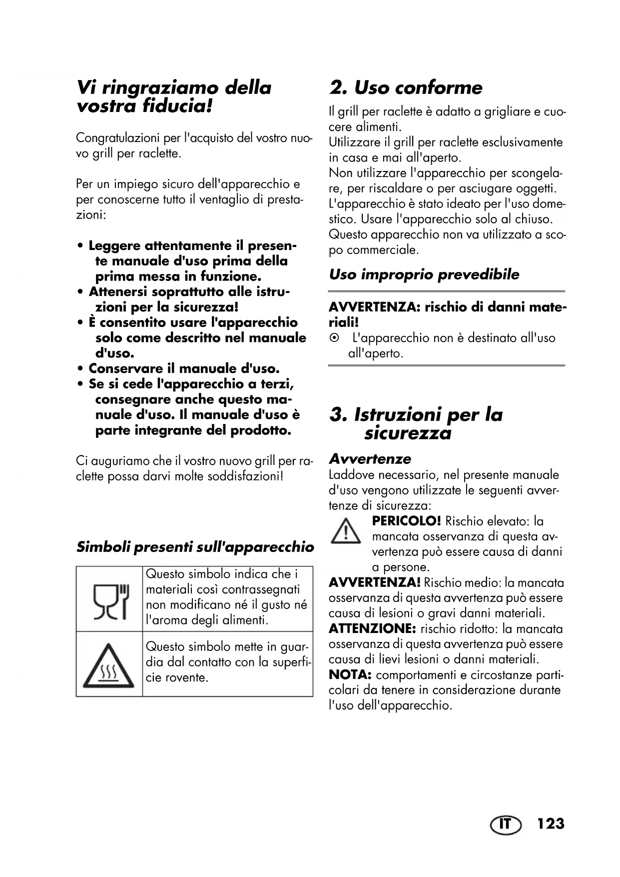 Vi ringraziamo della vostra fiducia! Congratulazioni per l'acquisto del vostro nuo- vo grill per raclette. Per un impiego sicuro dell'apparecchio e per conoscerne tutto il ventaglio di presta- zioni: