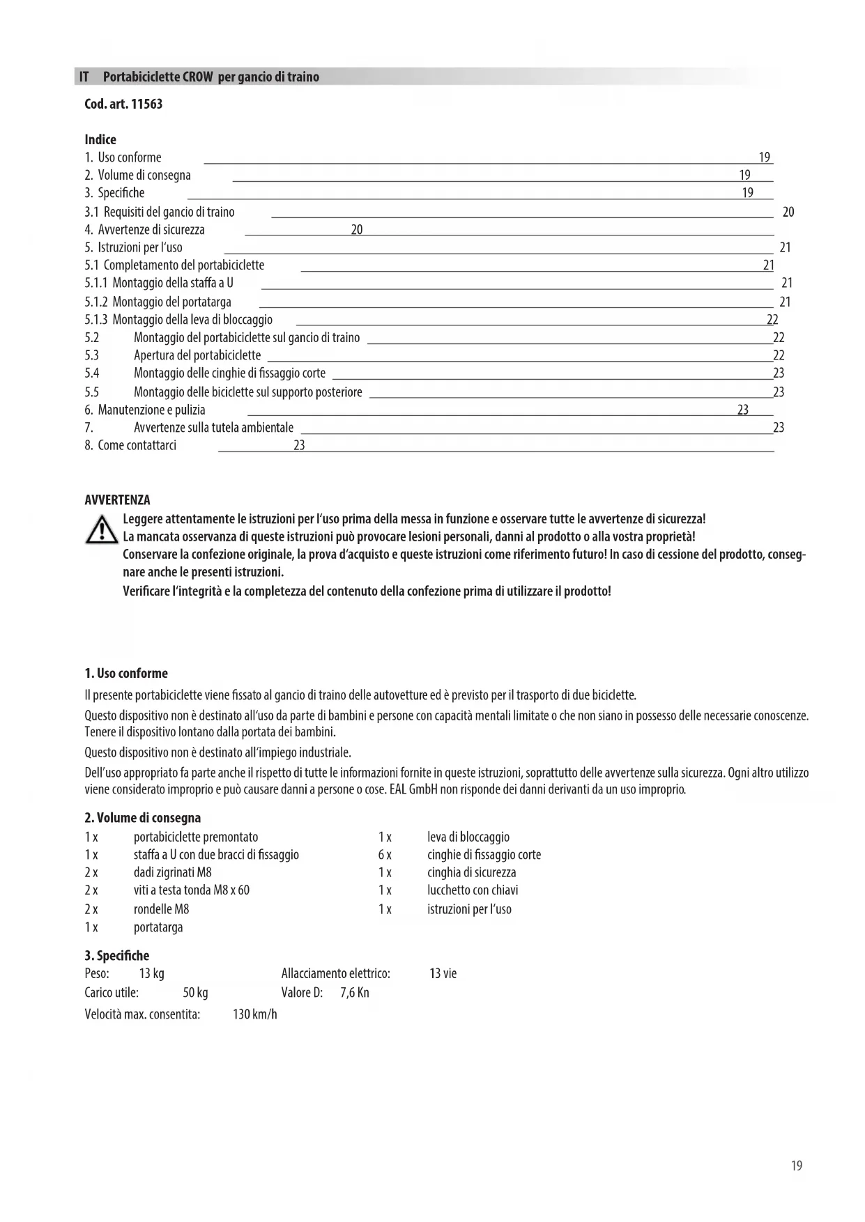 MANUALE UTENTE 11563 Eufab