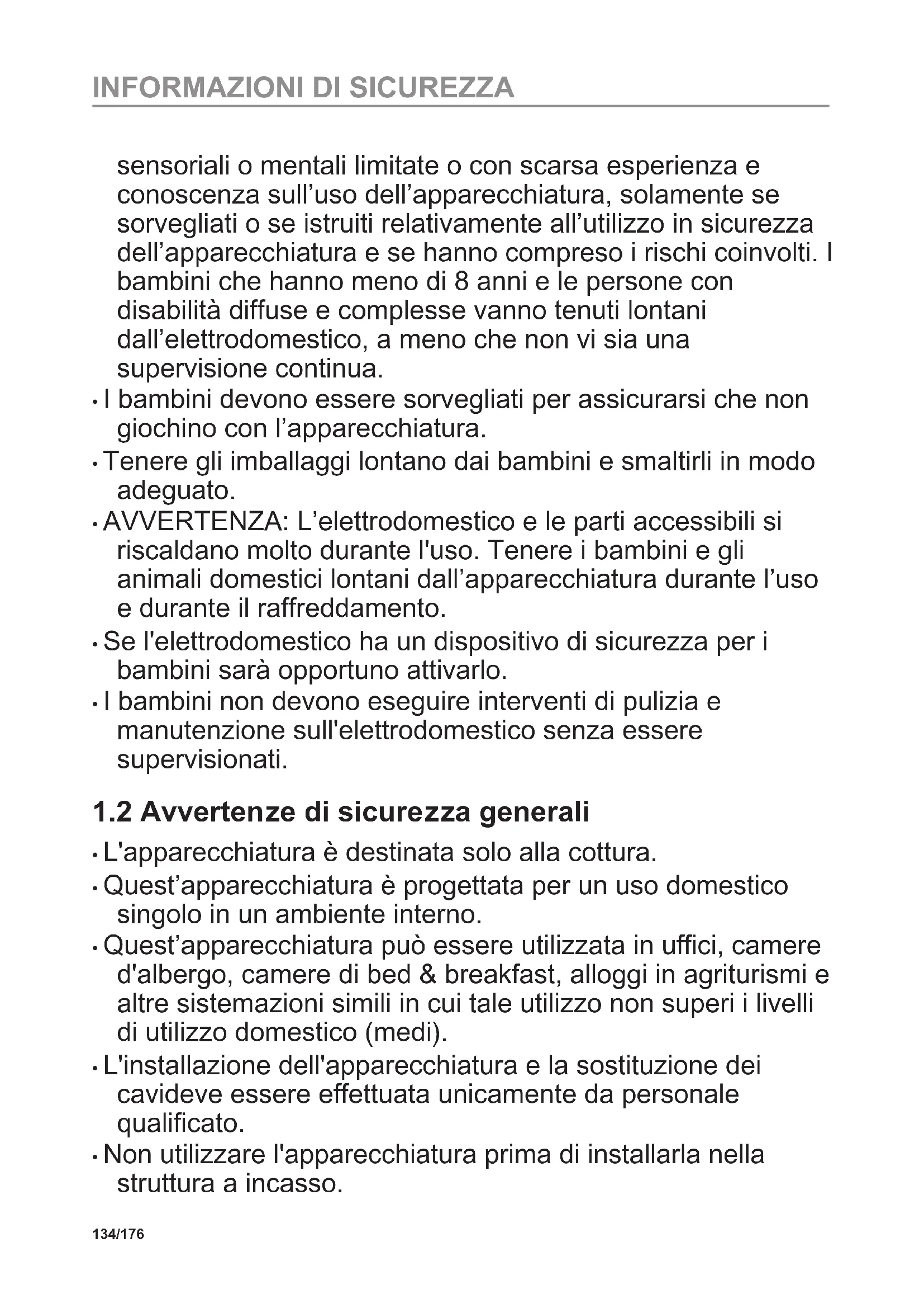 1.2 Avvertenze di sicurezza generali.134