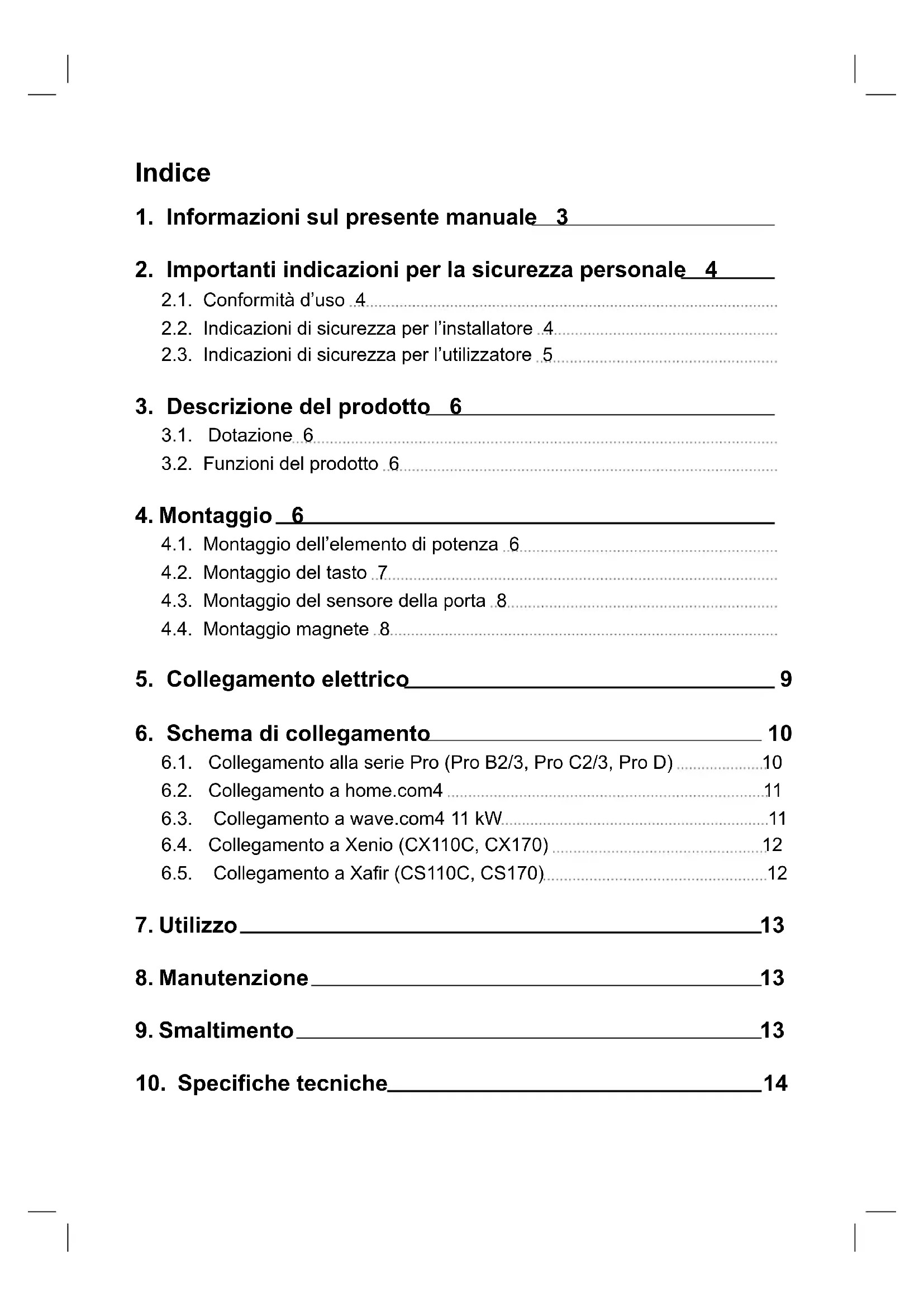 2.1. Conformità d’uso 4 2.2. Indicazioni di sicurezza per l’installatore 4 2.3. Indicazioni di sicurezza per l’utilizzatore 5
