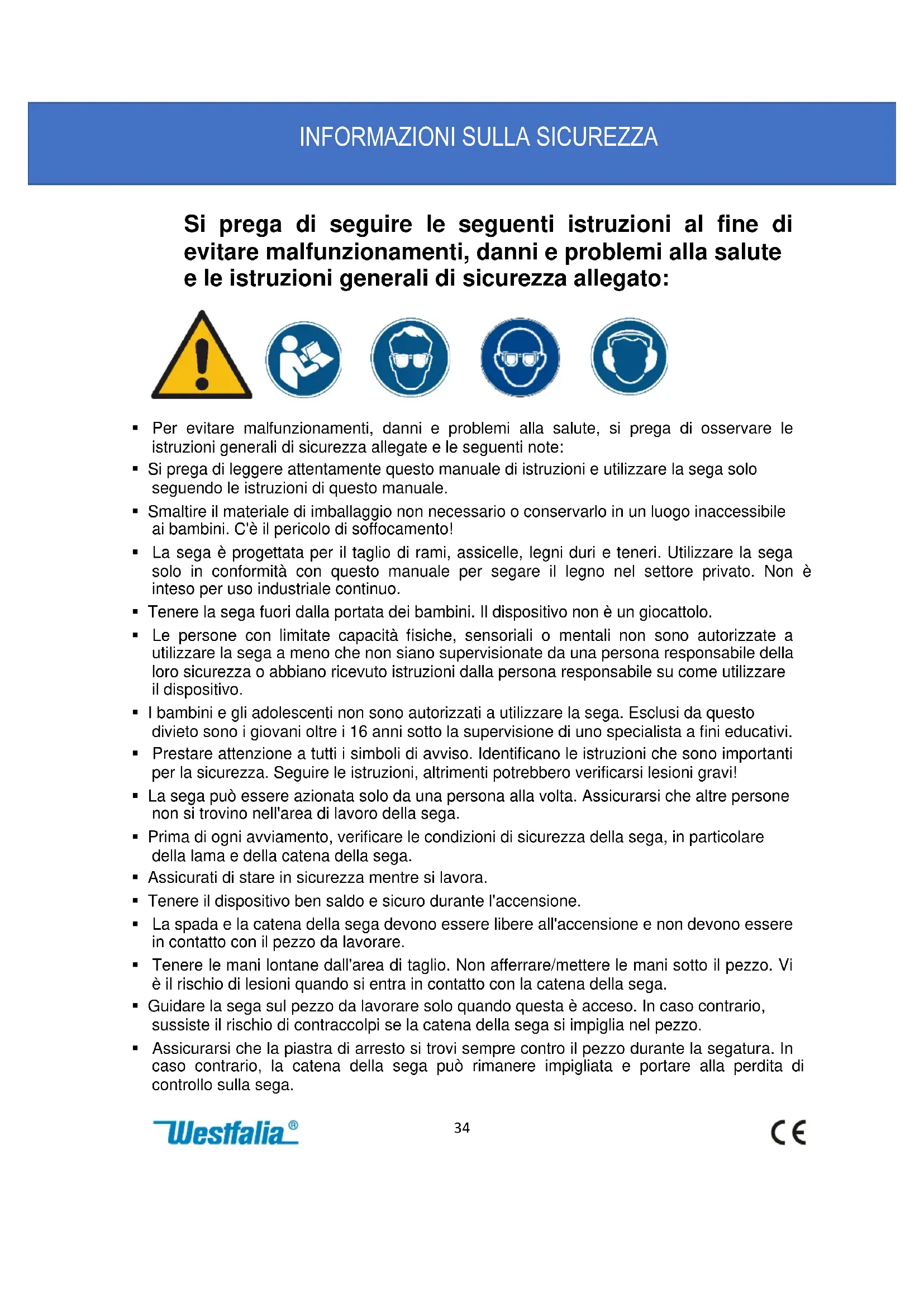 - Raccomandiamo di indossare indumenti resistenti ai tagli e aderenti e scarpe antinfortunistiche.37