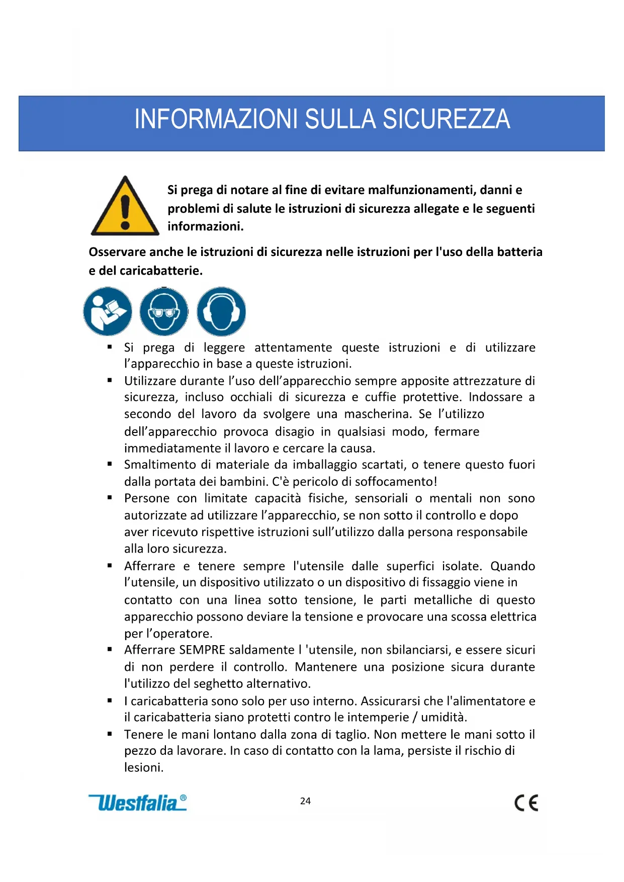 Scarica le istruzioni per il tuo Sega in formato PDF gratuitamente! Trova il tuo manuale ASSG 18 - Westfalia e riprendi in mano il tuo dispositivo elettronico. In questa pagina sono pubblicati tutti i documenti necessari per l'utilizzo del tuo dispositivo. ASSG 18 del marchio Westfalia.