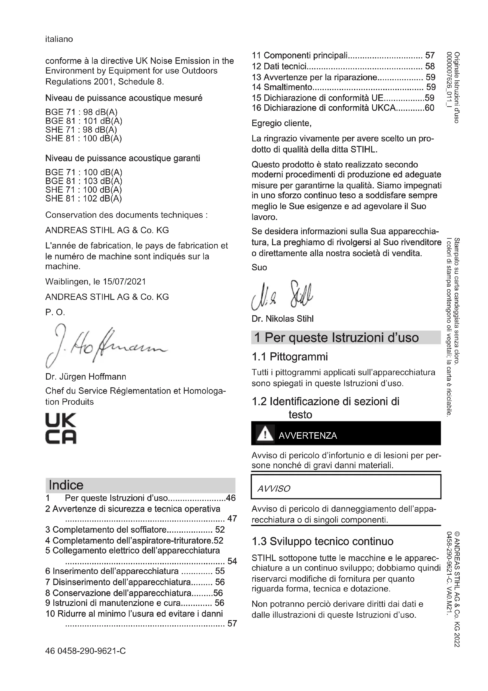 STIHL sottomone tutte le macchine e le apparecchiature a un continu sviluppo; dobbiamo quindi riservarci modifiche di fornitura per quanto riguarda forma, tecnica e dotazione.