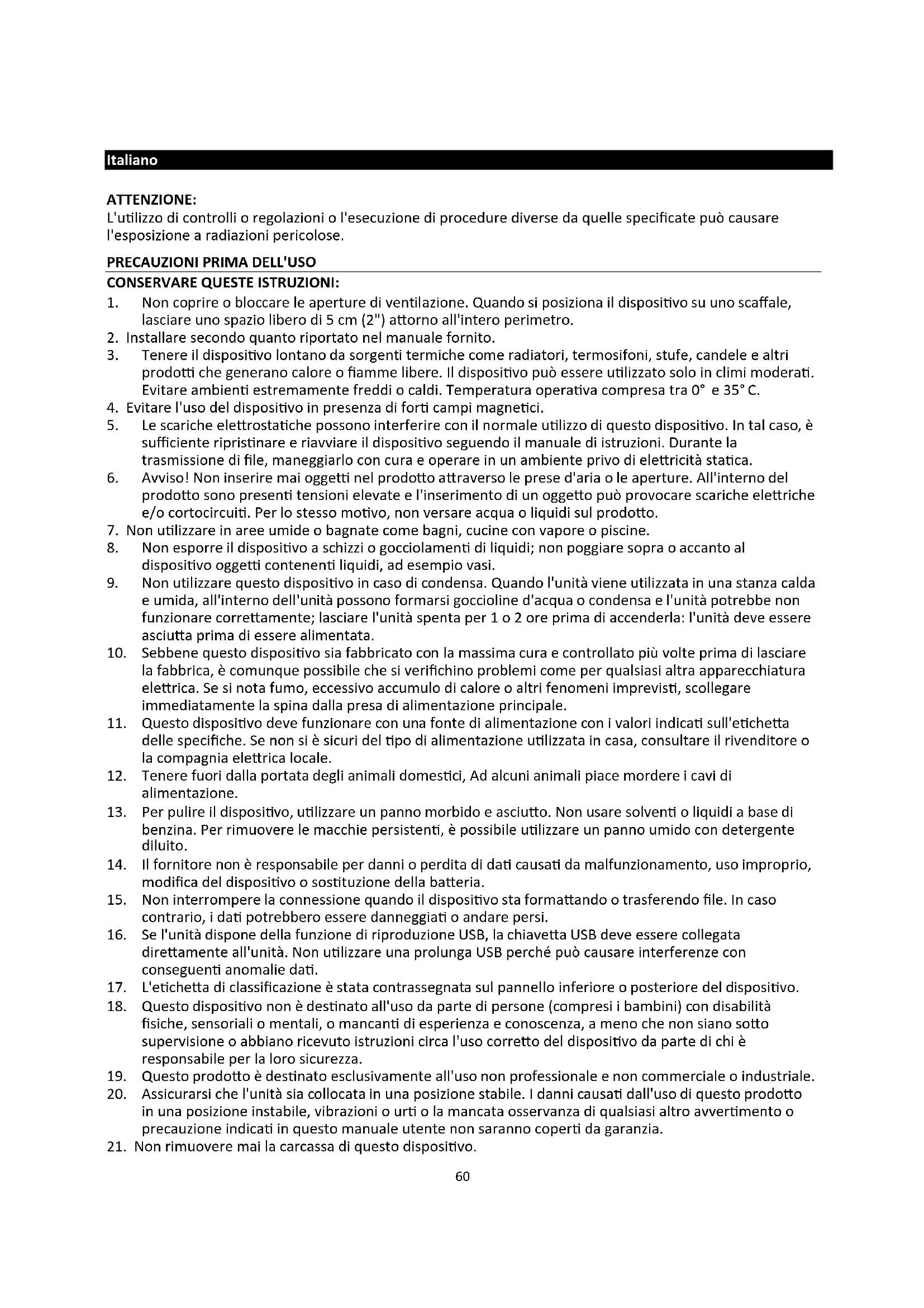 21. Non rimuovere mai la carcassa di questo dispositivo.61